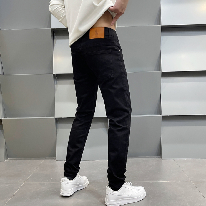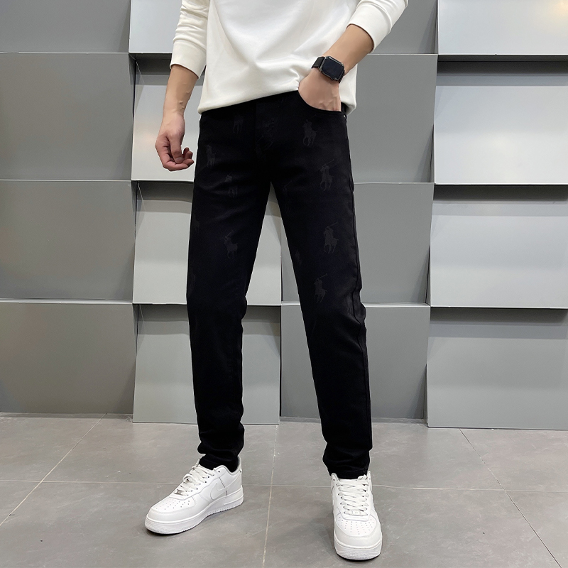 2025年秋冬新款黑色高端印花牛仔裤男士冬季宽松直筒裤休闲长裤 28 黑色