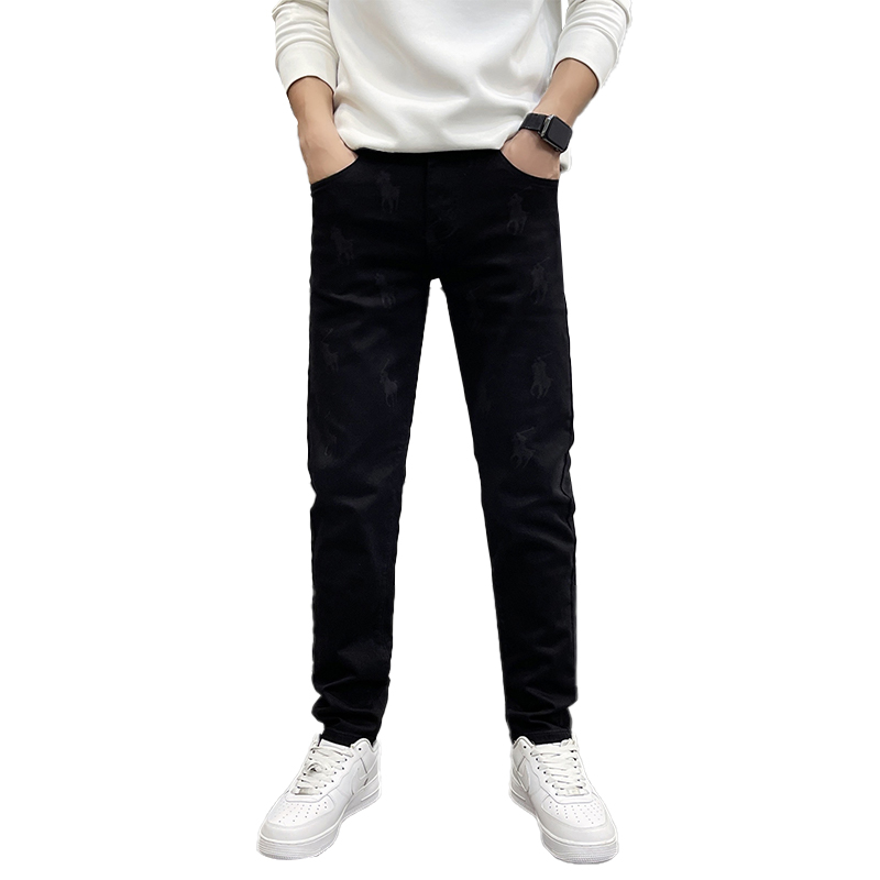 2025年秋冬新款黑色高端印花牛仔裤男士秋季宽松直筒休闲长裤子