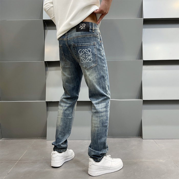 2025年秋冬新款浅蓝色高端印花牛仔裤男士秋季宽松直筒裤休闲长裤