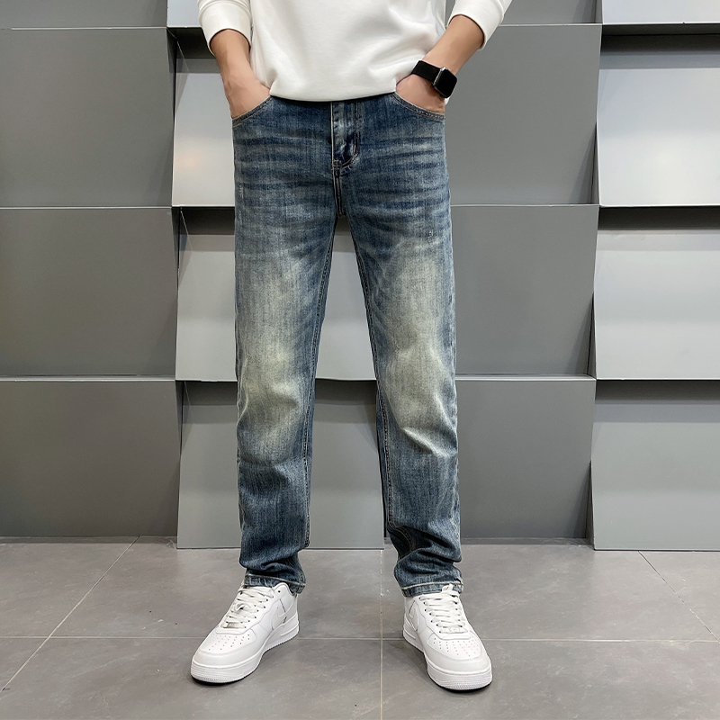 2023秋冬新款现货加绒牛仔裤直筒修身弹力水洗复古高端轻奢男士 28 蓝色
