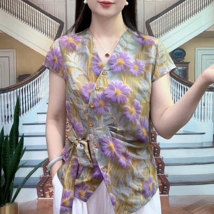 中老年妈妈装时尚洋气款上衣-2317-B XL 水波纹袖
