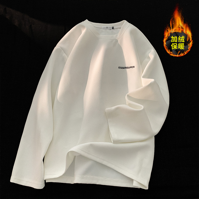 牛仔很忙-华夫格刺绣长袖打底衫加绒加厚TJ2001-20/常规TC1008-15 M TJ2001白色(加绒)