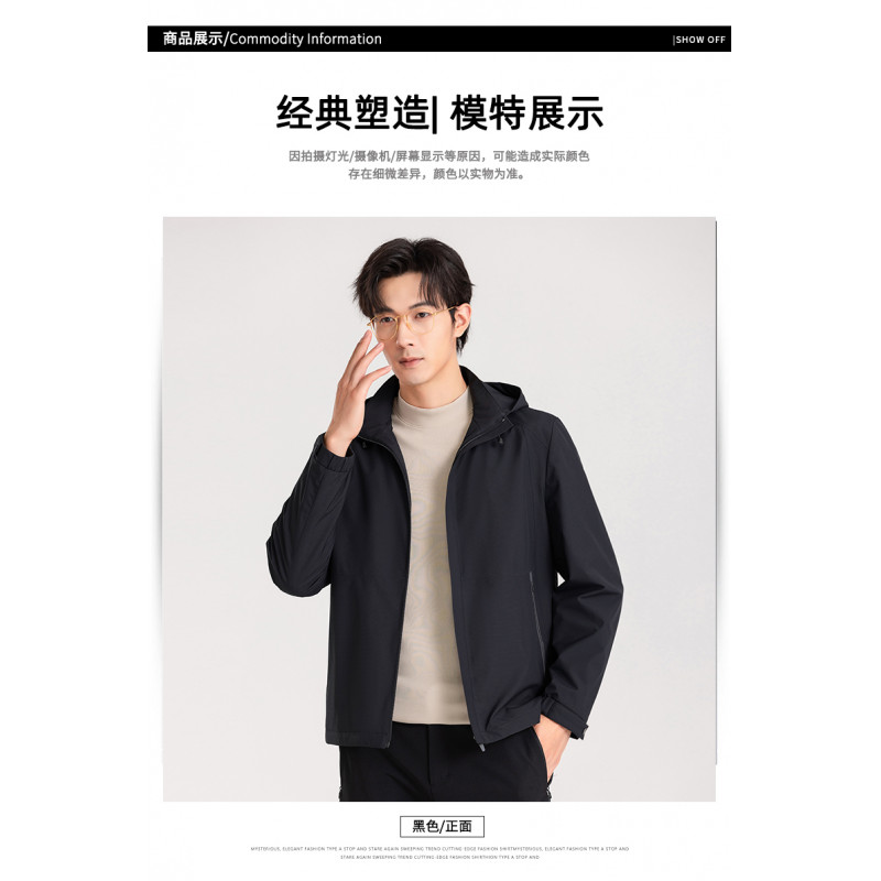 男士翻领夹克2024秋冬新款商务休闲纯色百搭工装外套上衣 170 黑色