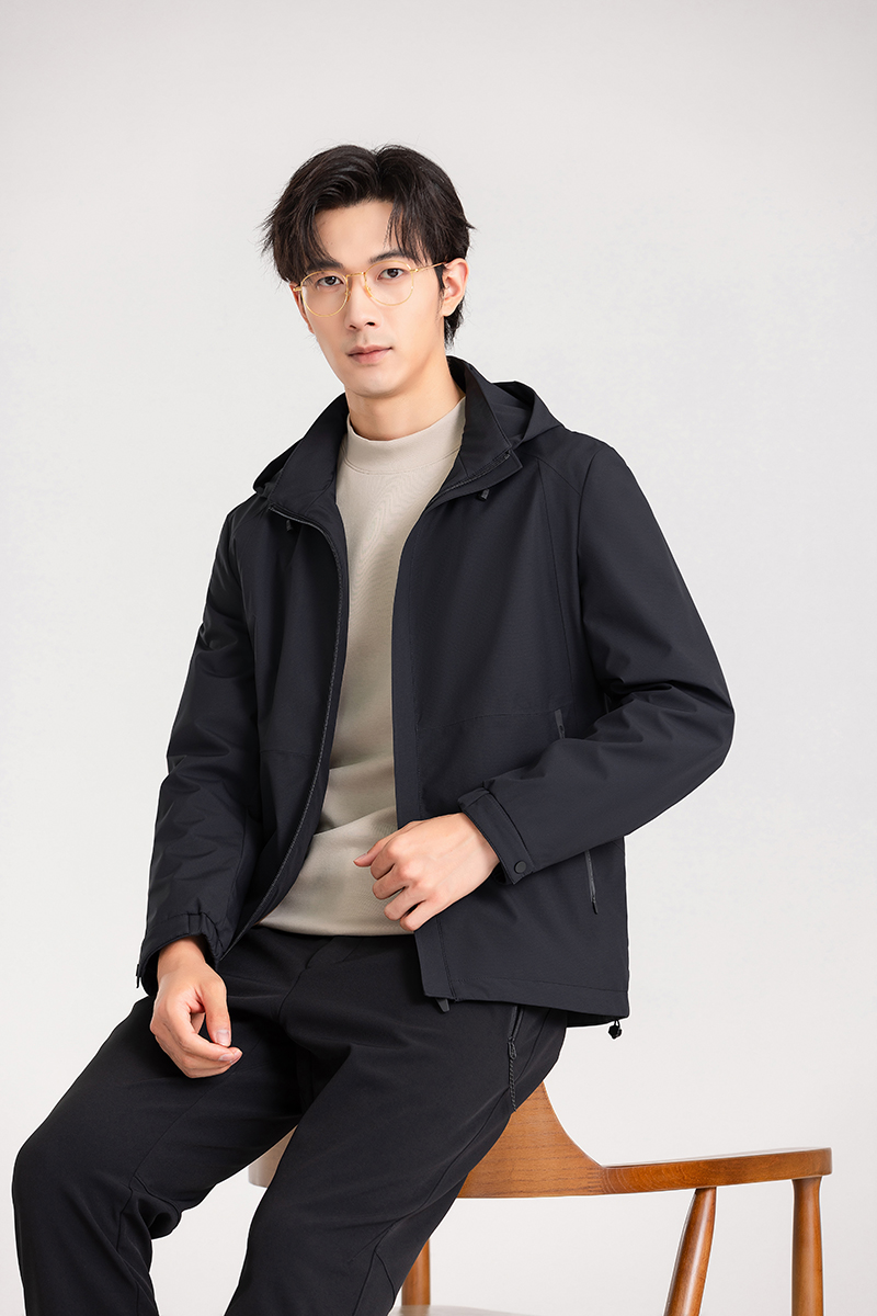 秋冬新品户外休闲轻奢中厚夹克可脱卸帽摇粒绒加厚内里外套 170/84A 黑色