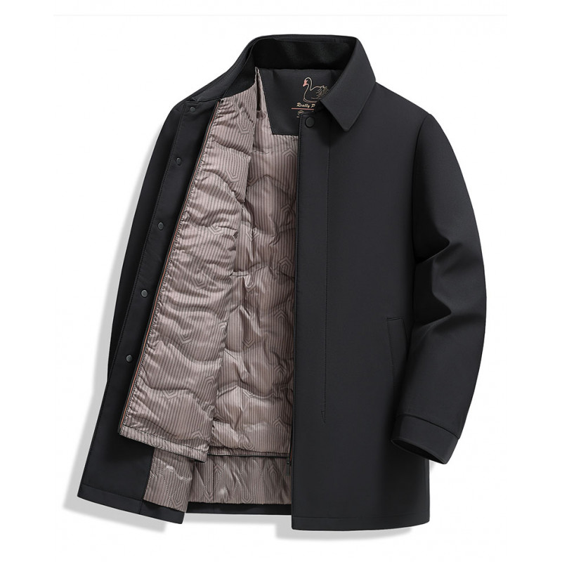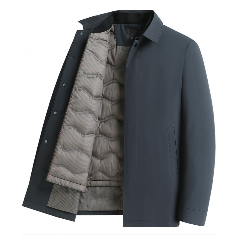 [一衣三穿]秋冬季中长款羽绒服男翻领风衣外套保暖中年爸爸装
