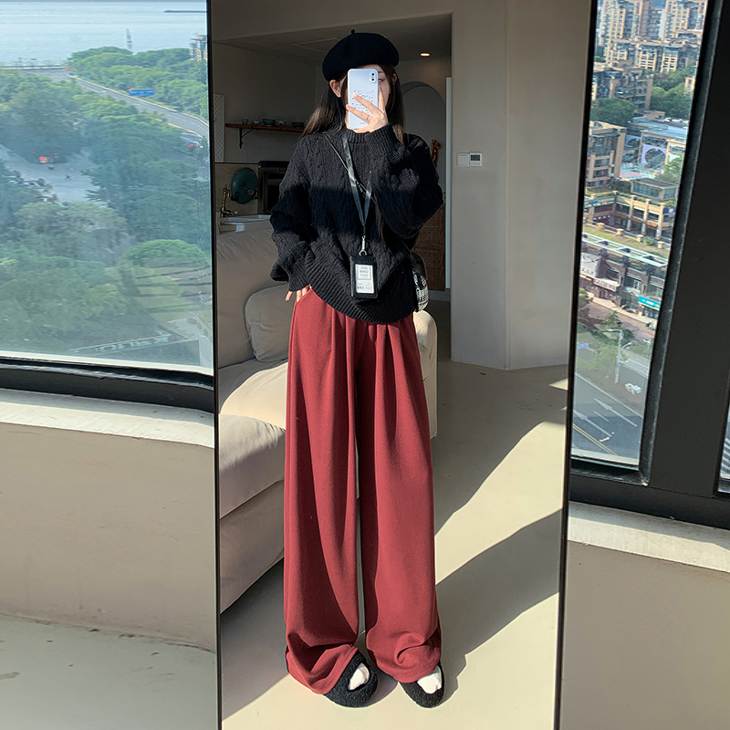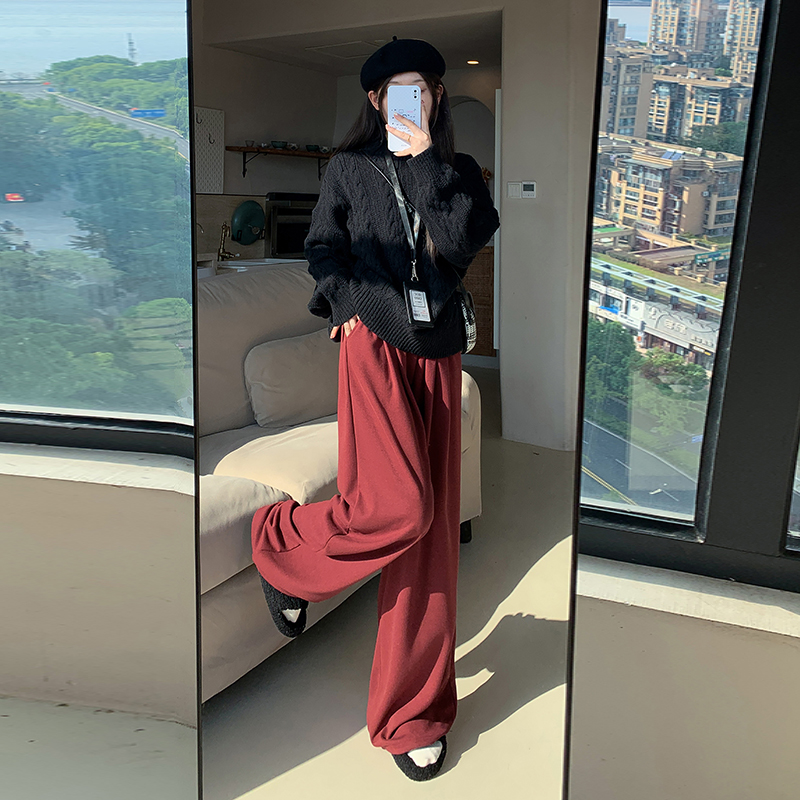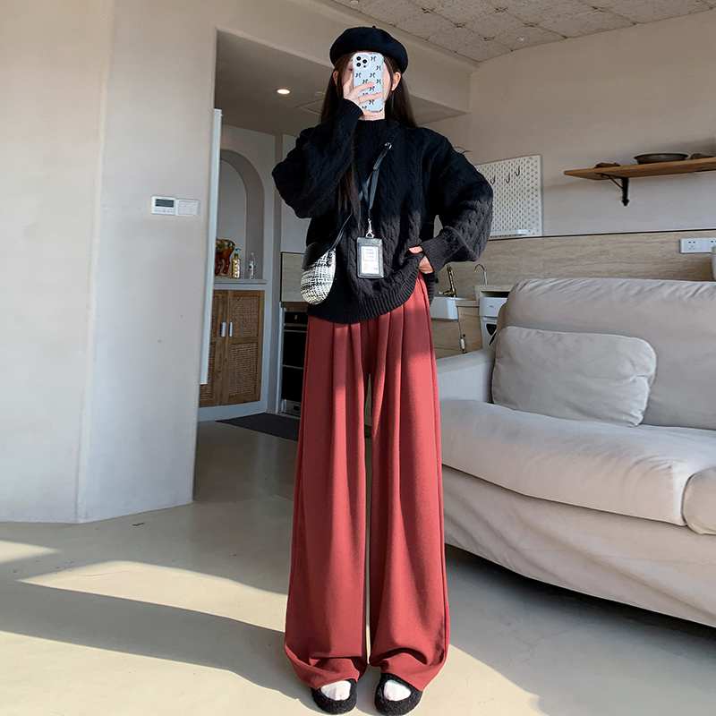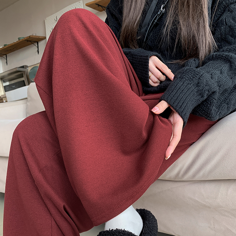 羊绒阔腿裤女秋冬高级感2025新款高腰阔腿裤宽松显瘦休闲百搭裤子 S 2308 安哥拉红加绒