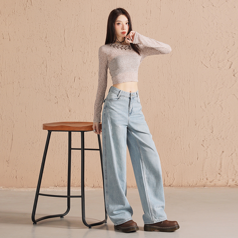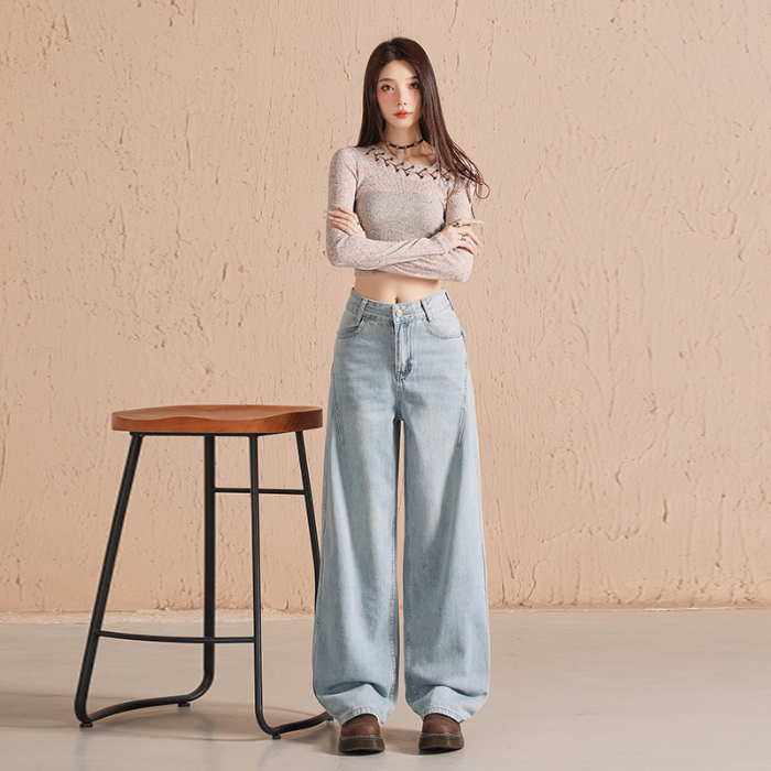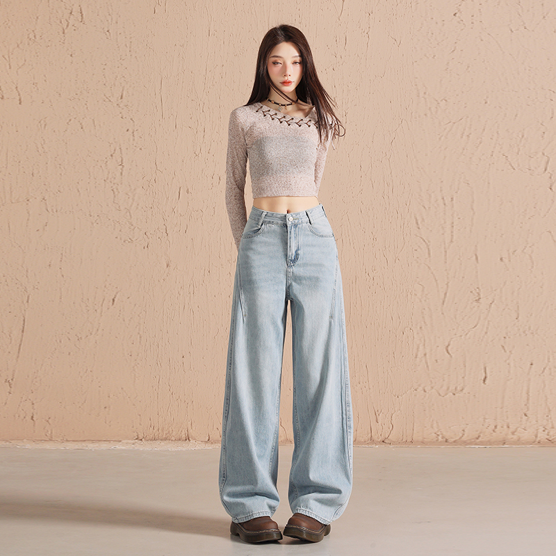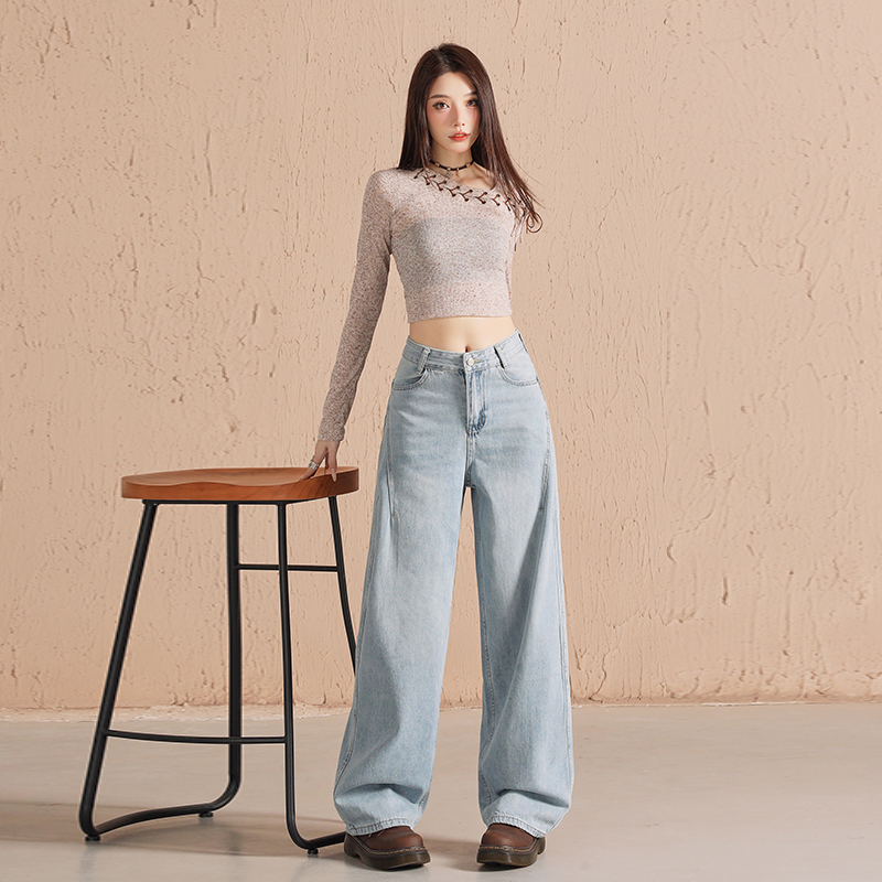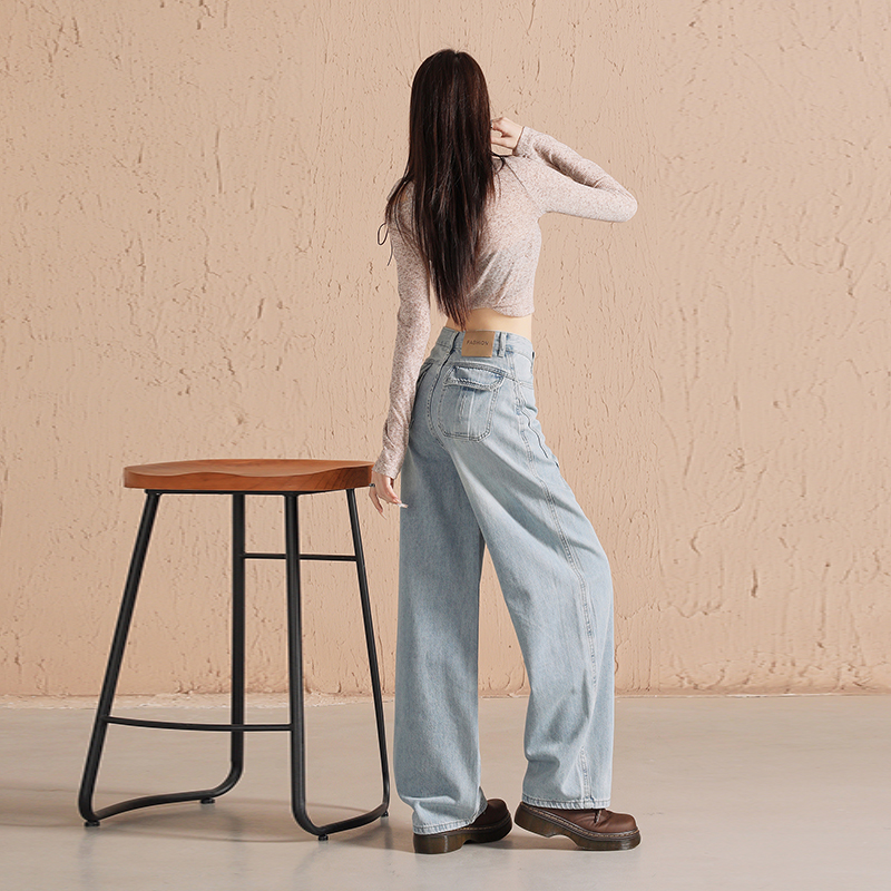 浅蓝牛仔裤女春秋季2025新款宽松显瘦直筒拖地长裤小个子阔腿裤