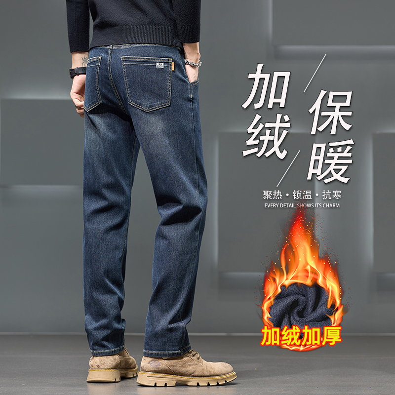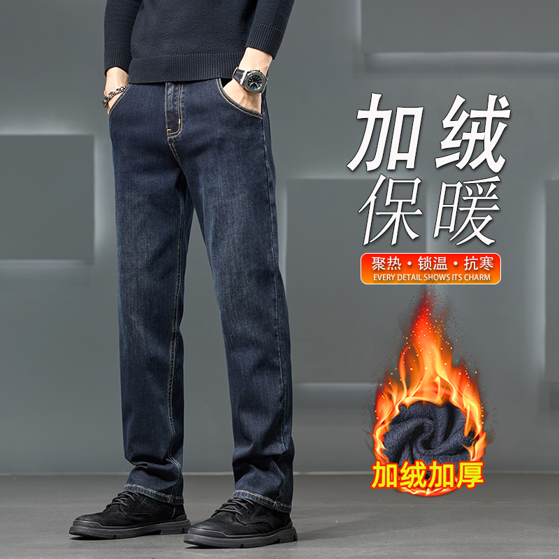 2025秋冬新款男士宽松直筒牛仔裤轻商务弹力百搭男裤子加绒长裤