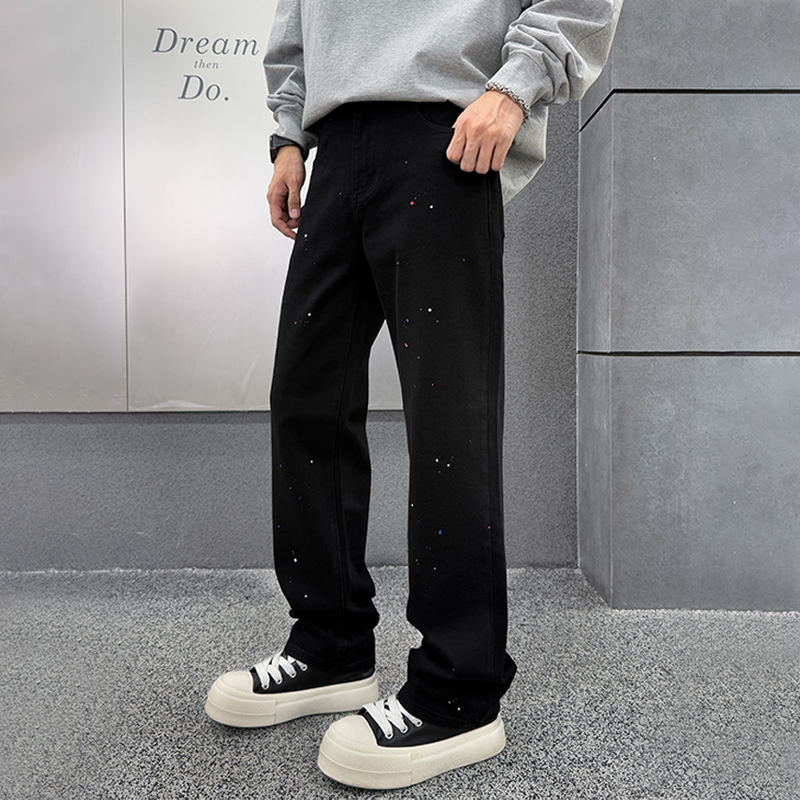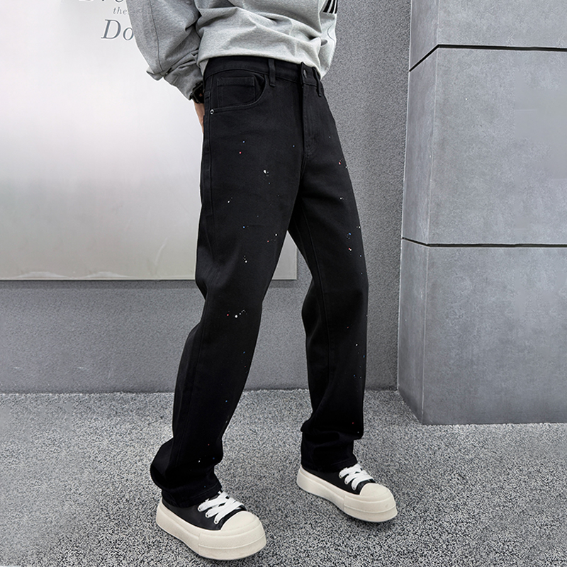 2025年秋冬季新款白色高端牛仔裤男士秋季宽松百搭潮牌休闲长裤 28 黑色