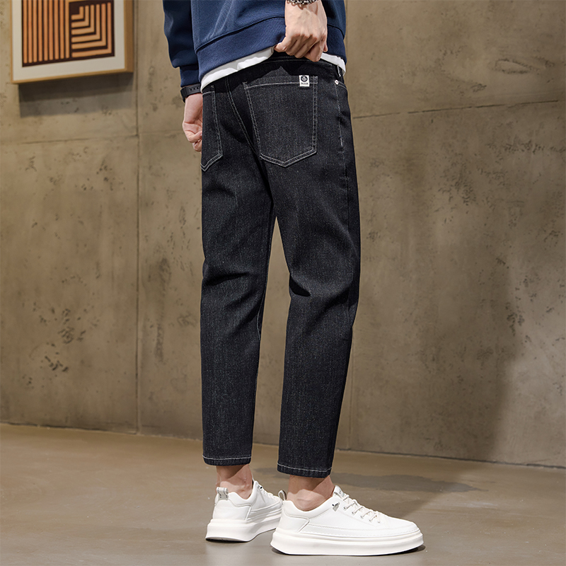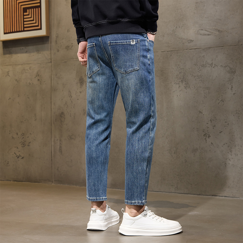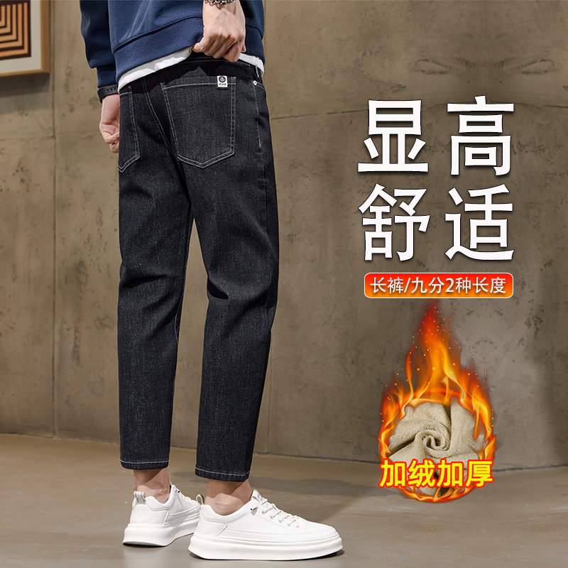 2025秋冬新款男士修身小直筒加绒牛仔裤男弹力休闲九分裤百搭男裤