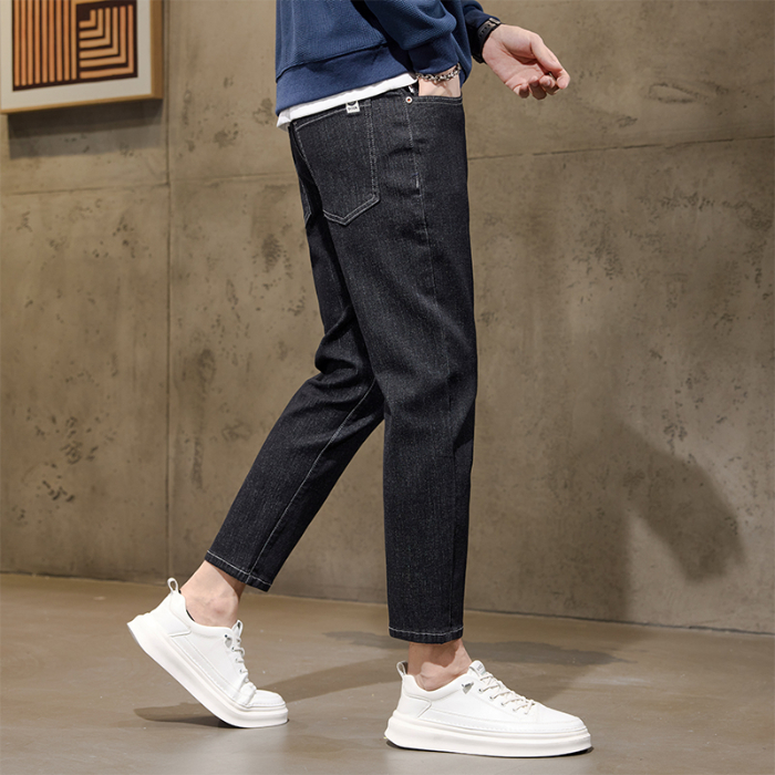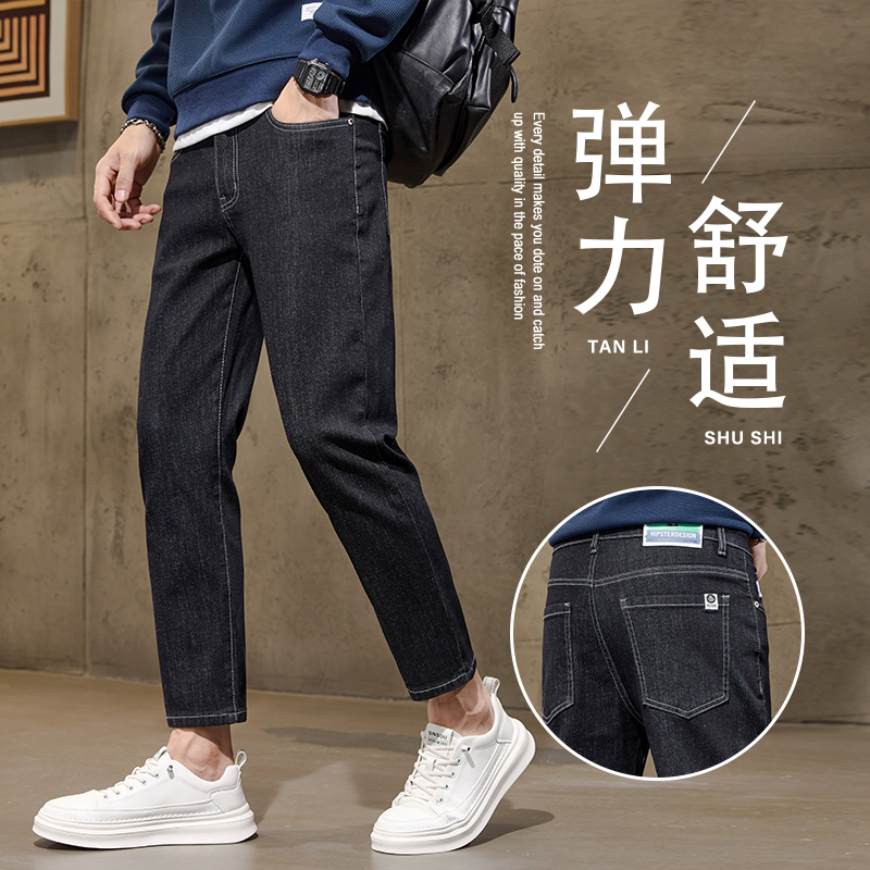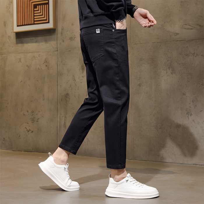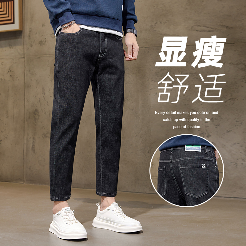 2025秋季新款男士修身小直筒牛仔裤男弹力时尚休闲九分裤百搭男裤 27 3900黑色