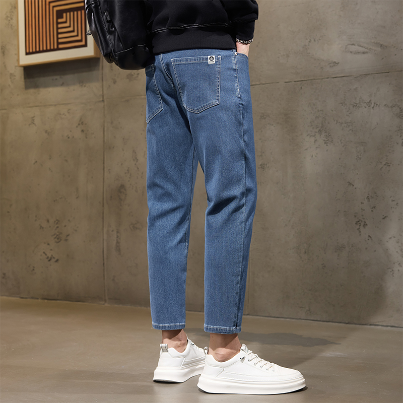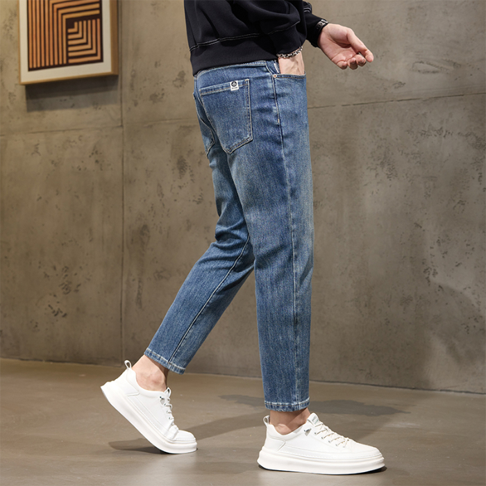 2025秋季新款男士修身小直筒牛仔裤男弹力时尚休闲九分裤百搭男裤 27 复古蓝