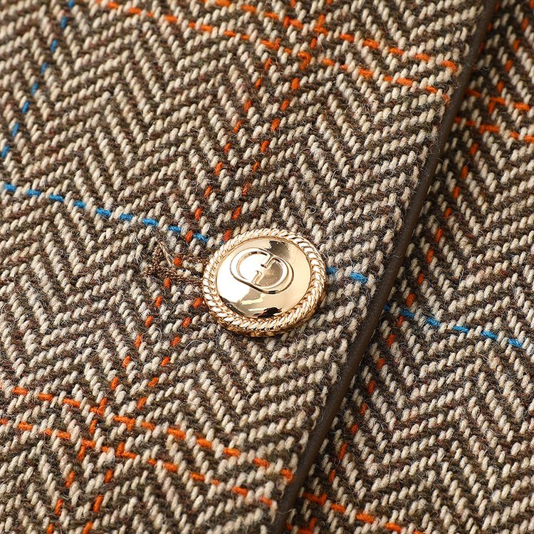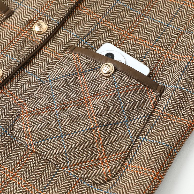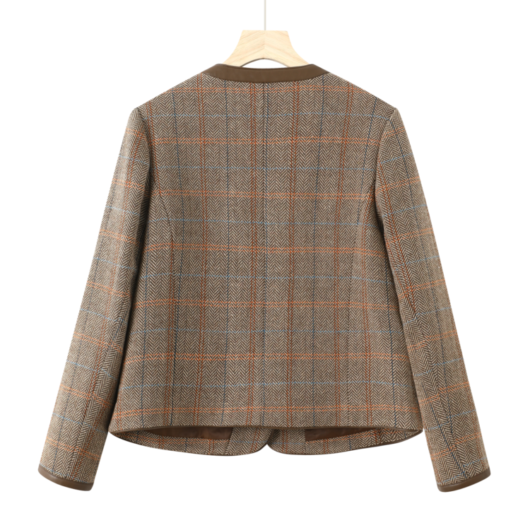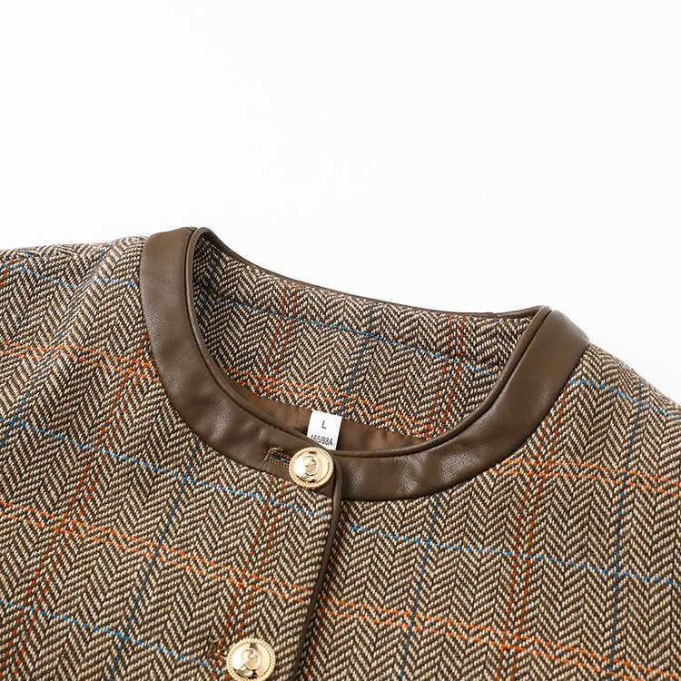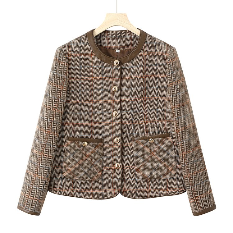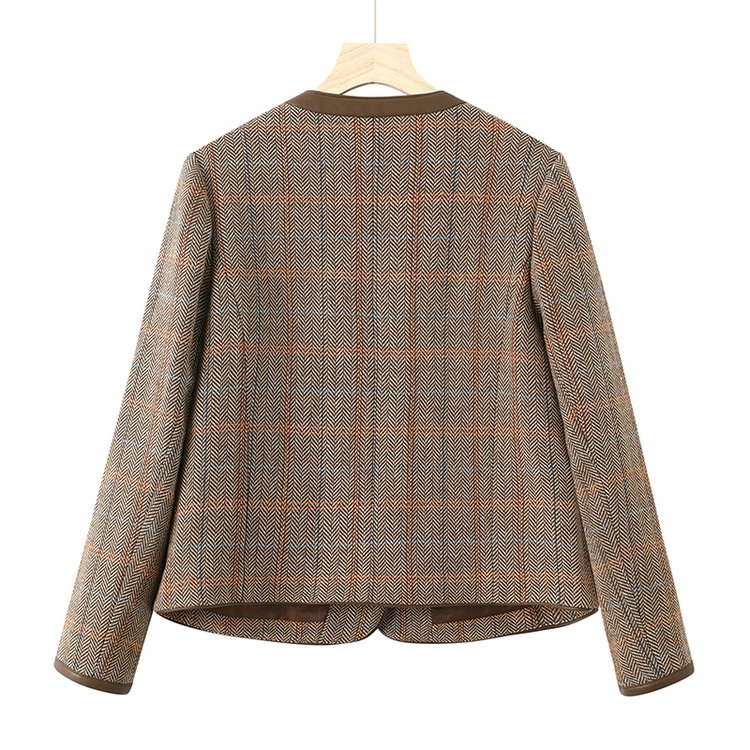 秋冬新款中老年女士格纹羊毛呢外套圆领大码宽松休闲百搭显瘦上衣 XL 黄色
