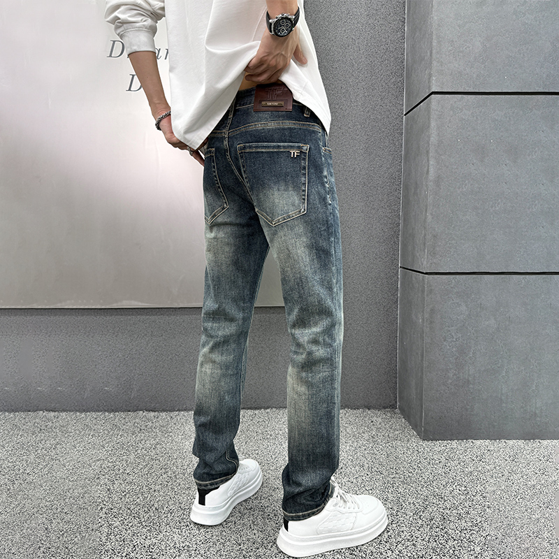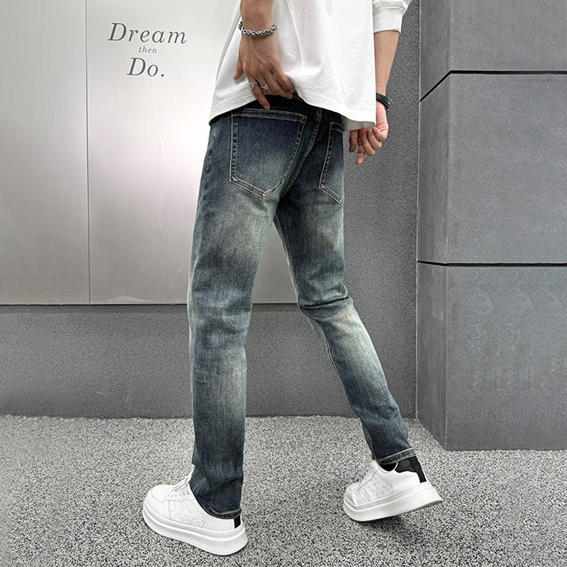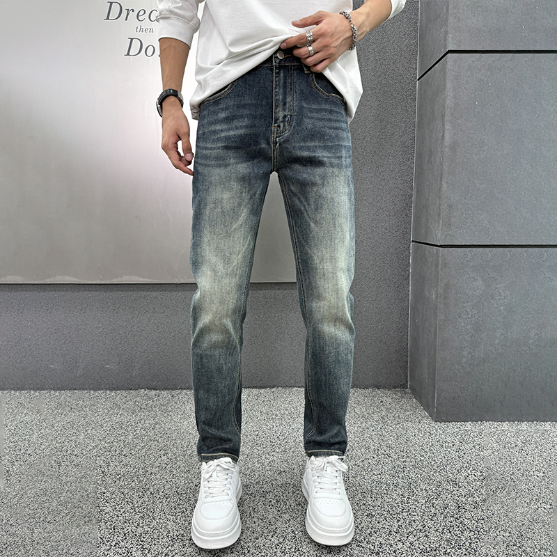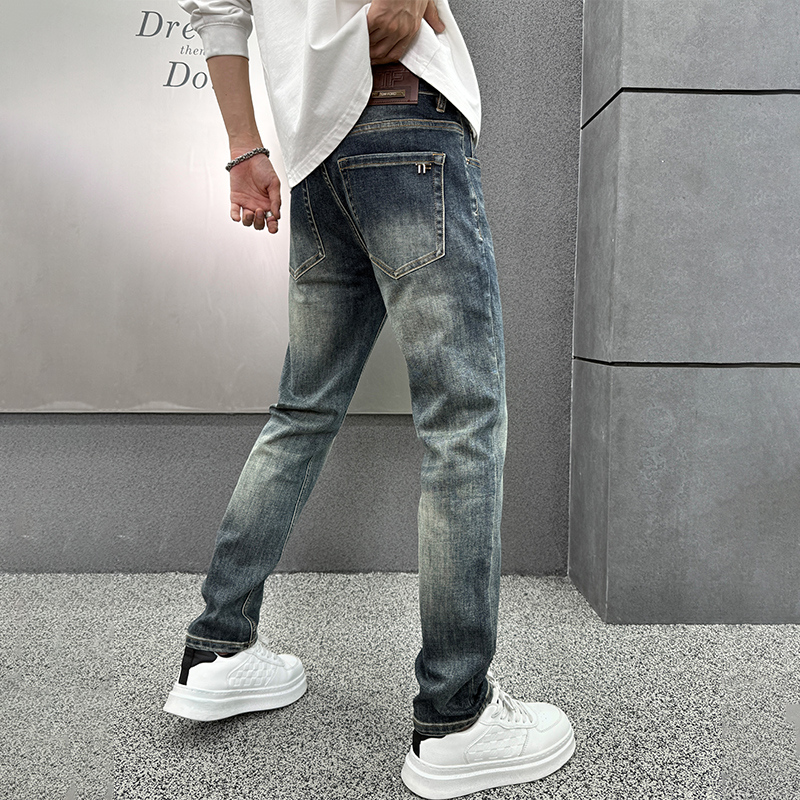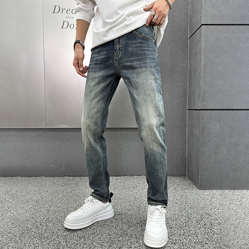 2023秋冬新款现货加绒牛仔裤直筒修身弹力水洗复古高端轻奢男士 28 蓝色