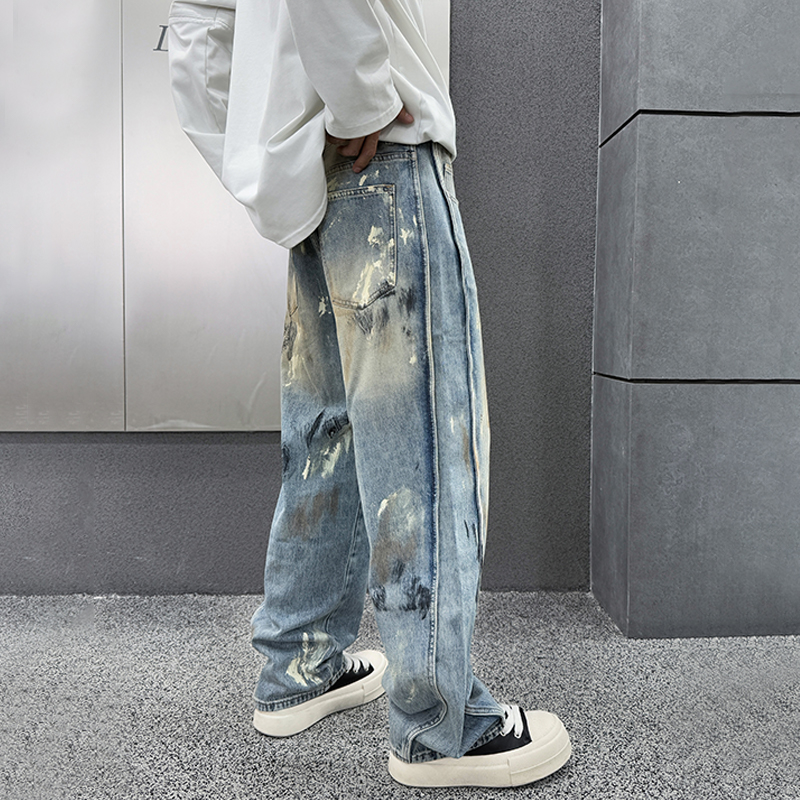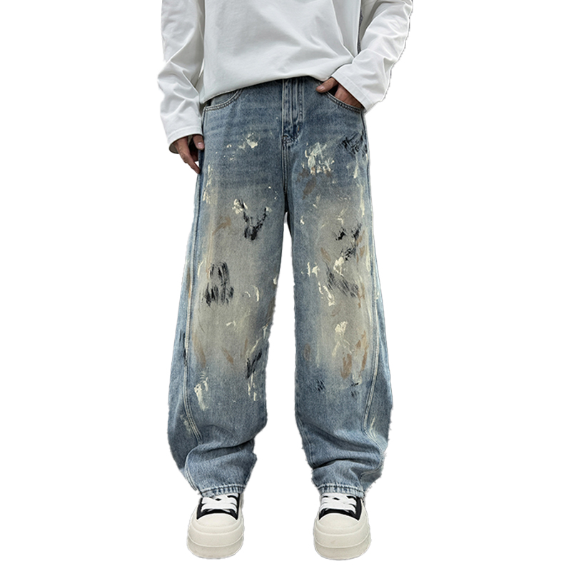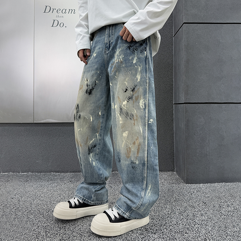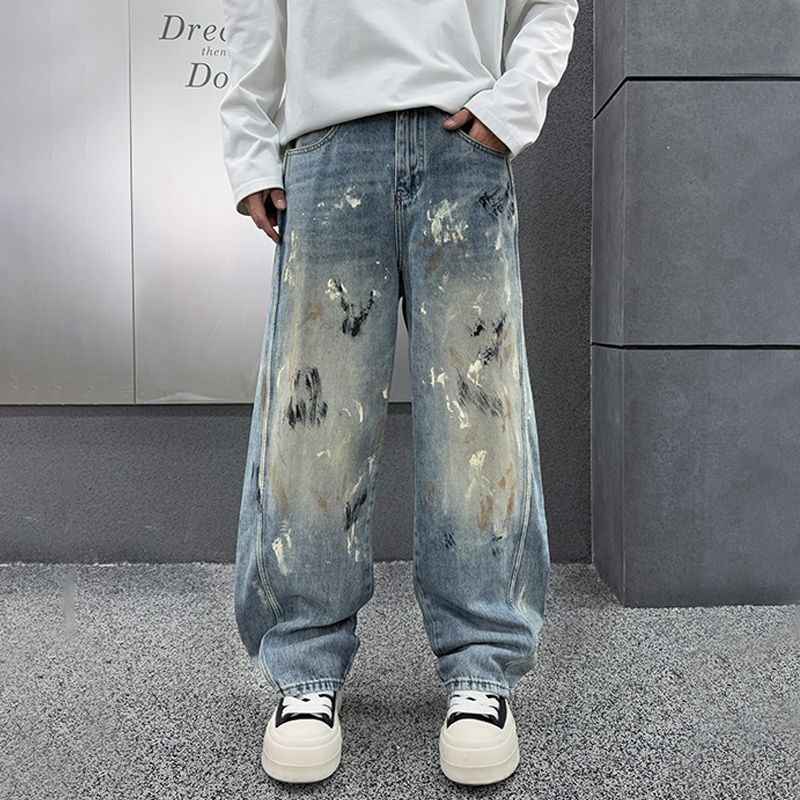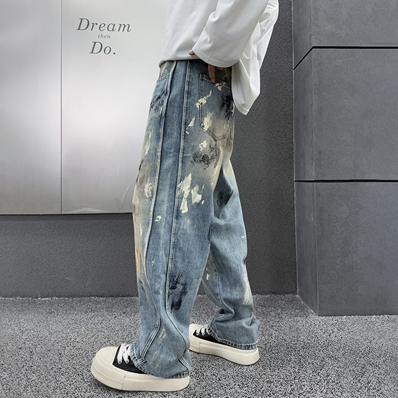 2025年秋冬新浅蓝色高端潮牌牛仔裤男士秋季宽松直筒裤休闲长裤子