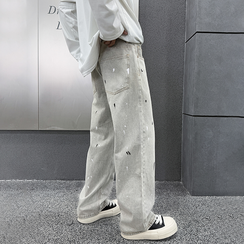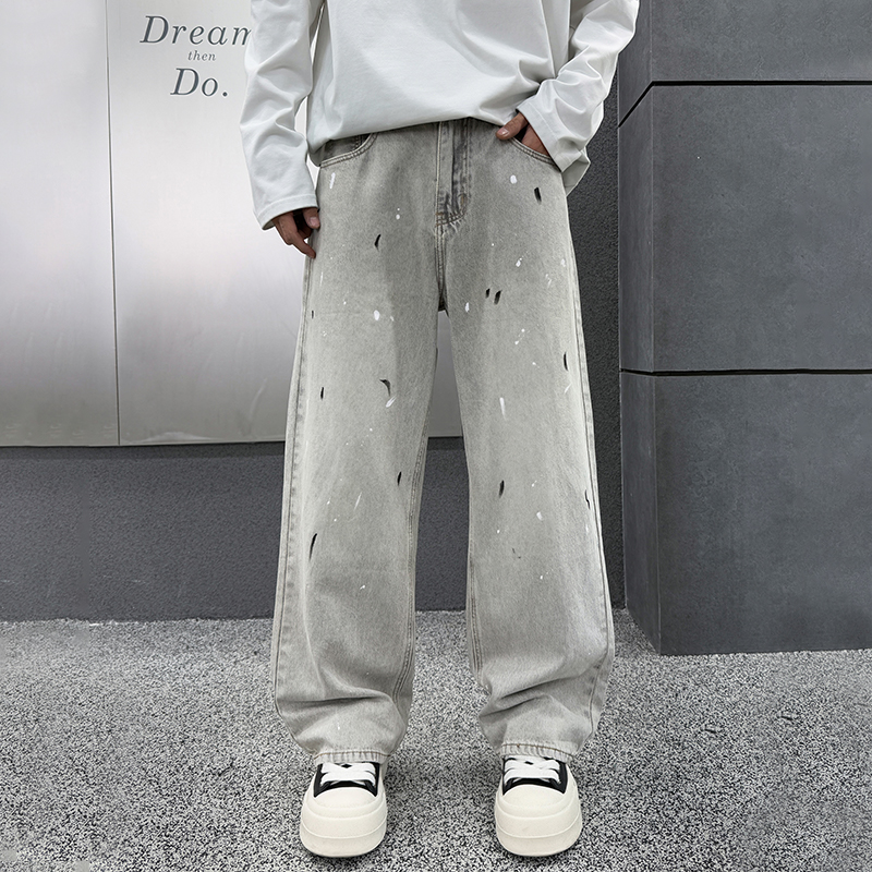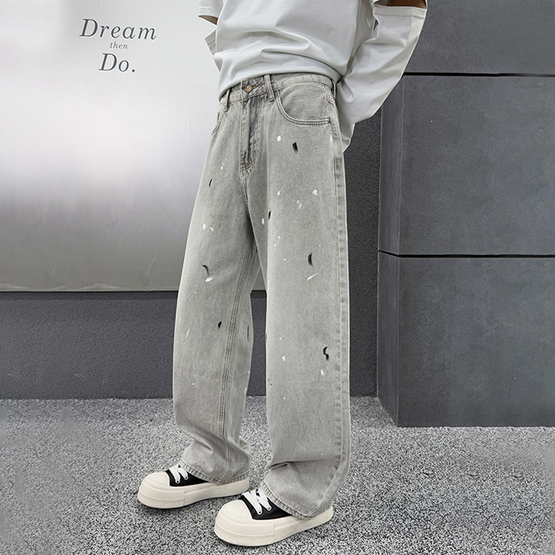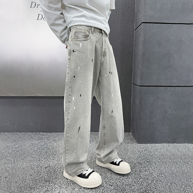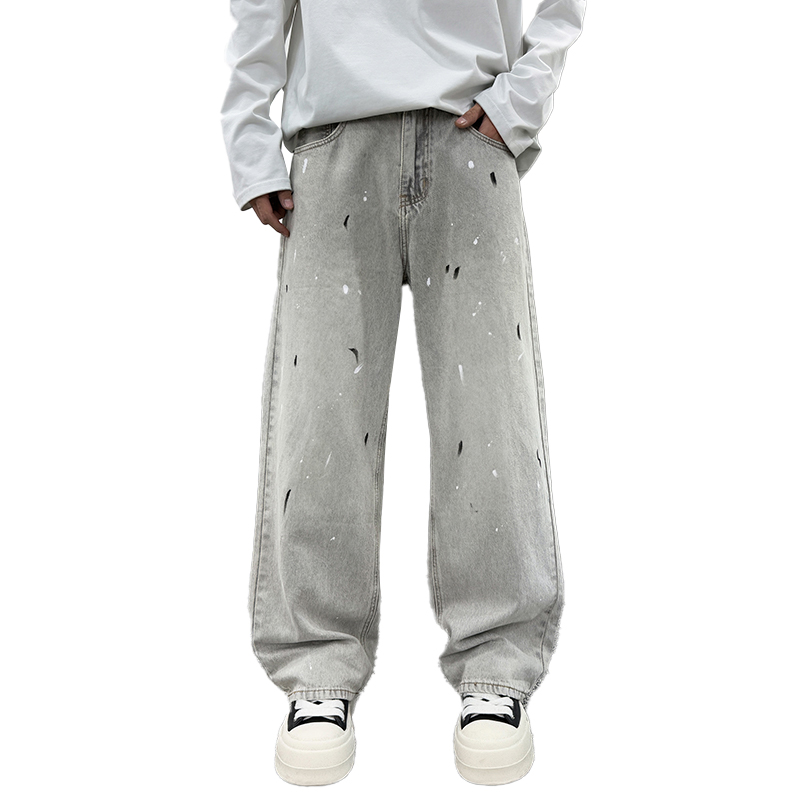 2025年秋冬新浅灰色高端潮牌牛仔裤男士秋季宽松直筒裤休闲长裤子