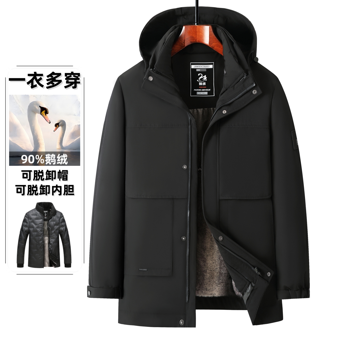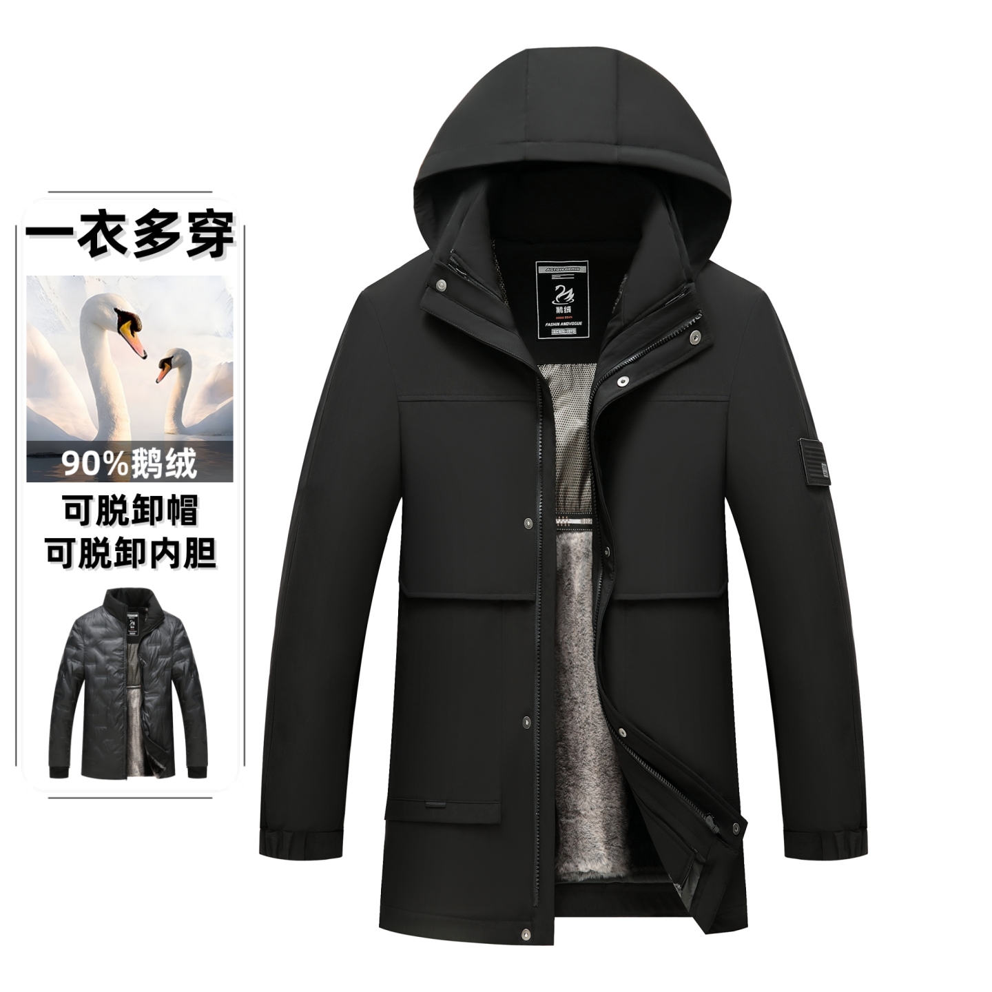 6622款新国标90白鹅绒内胆可脱卸羽绒服 M 黑色