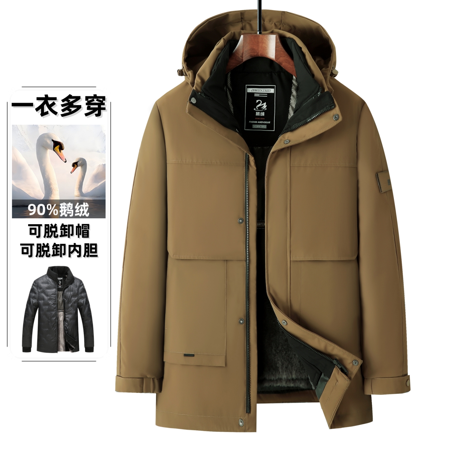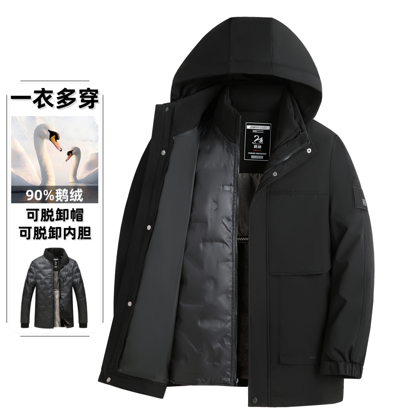 6621款新国标90白鹅绒内胆可脱卸羽绒服 M 黑色