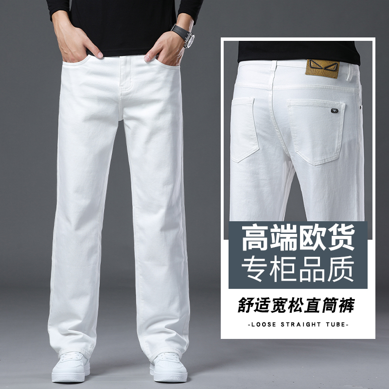 2025年秋冬季新款白色高端牛仔裤男士秋季宽松百搭潮牌休闲长裤 28 白色