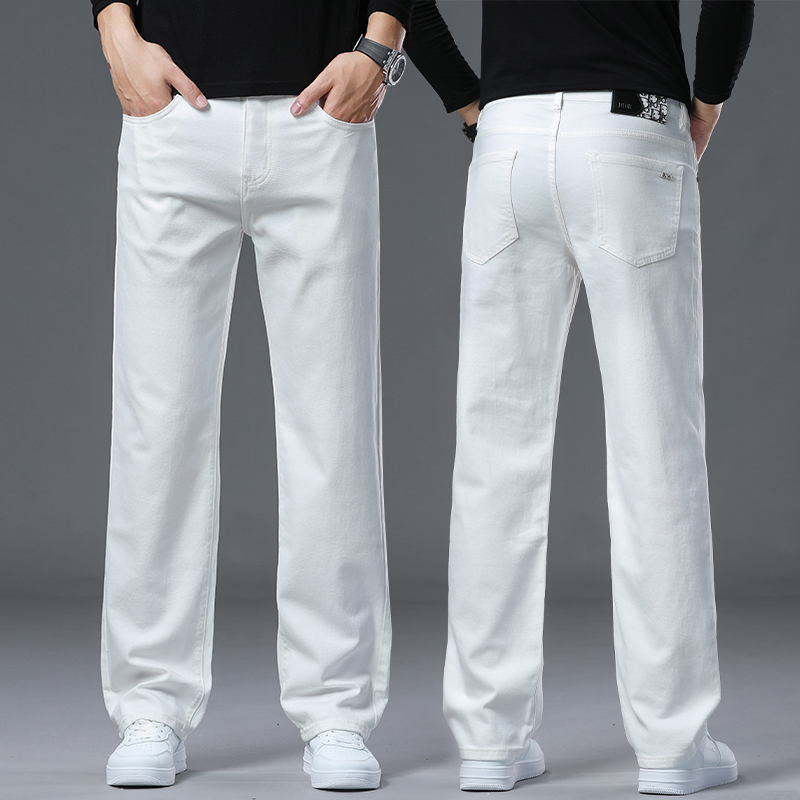 2025年秋冬季新款白色高端牛仔裤男士秋季宽松百搭潮牌休闲长裤 28 白色