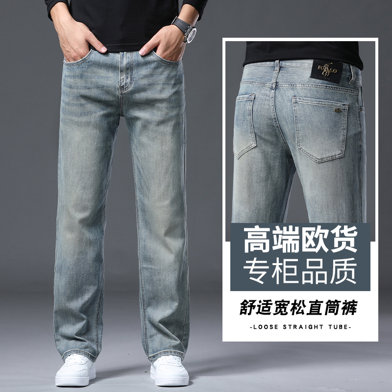 2025年秋冬新款浅蓝色高端牛仔裤男士秋款宽松百搭直筒裤休闲长裤 28 浅蓝色