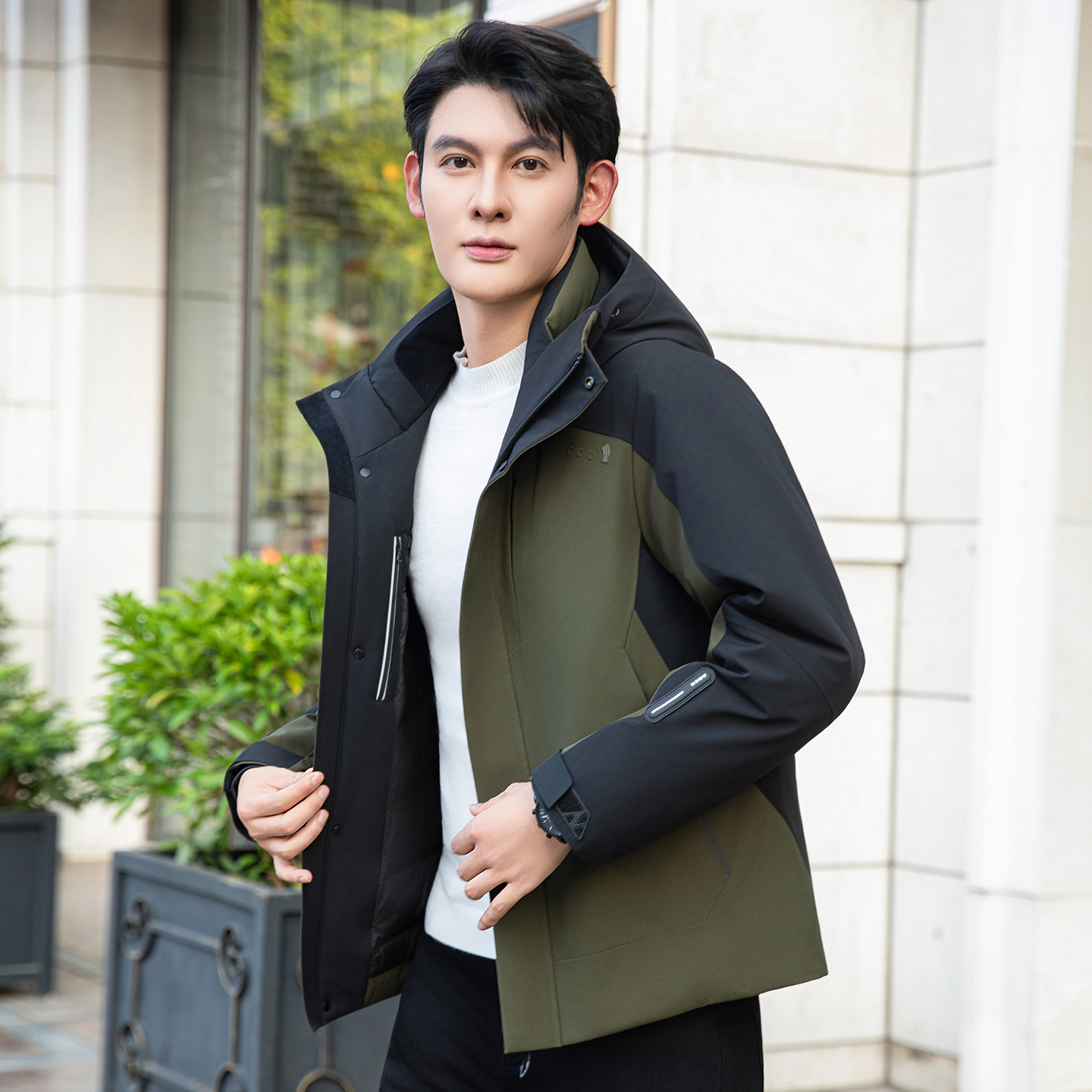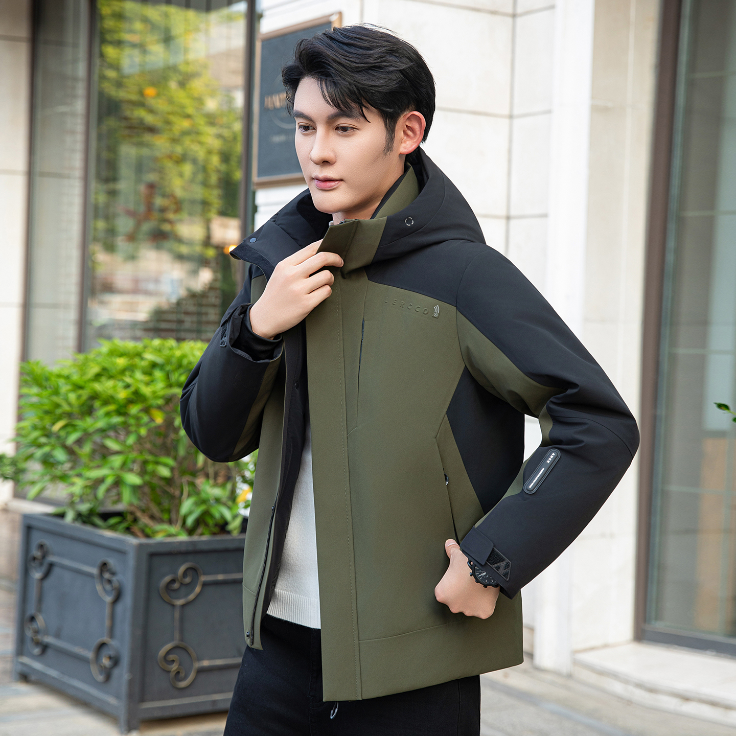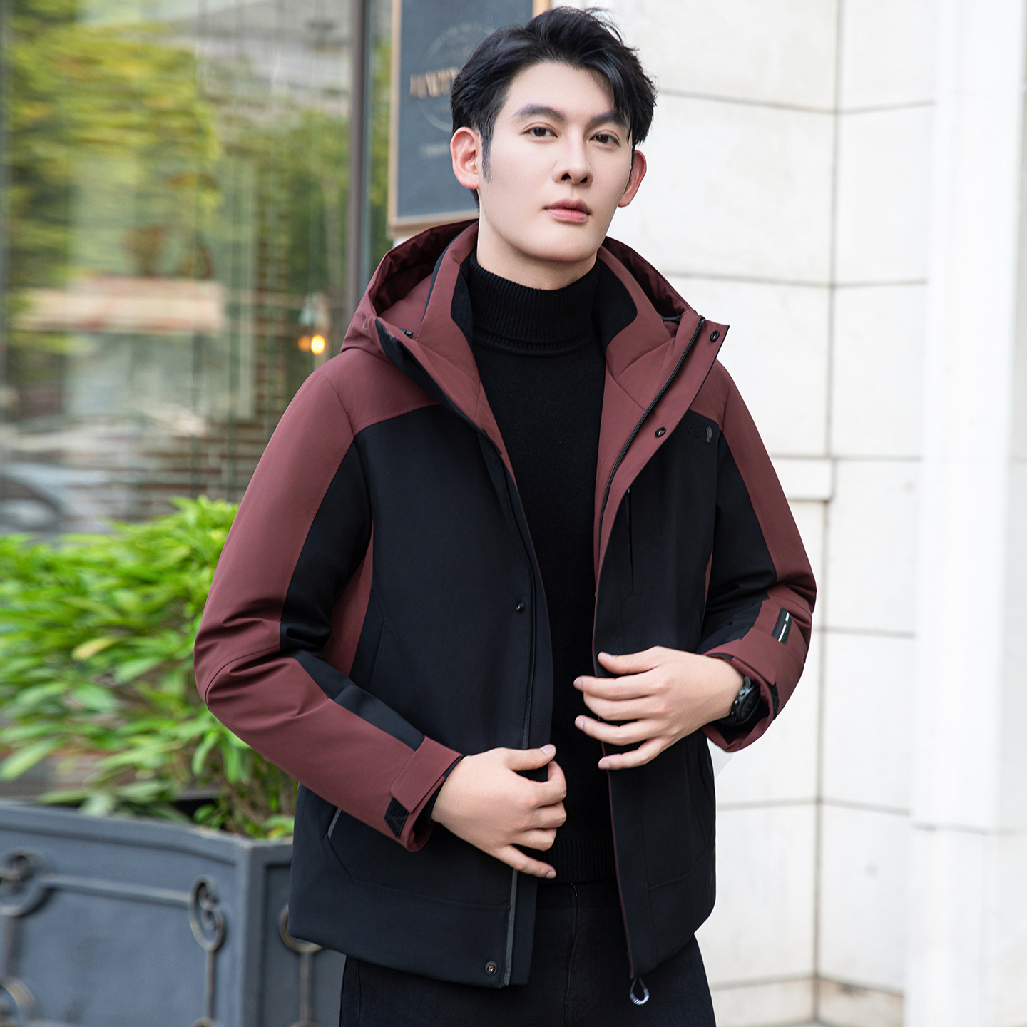 羽绒服男冬季翻领2025冬季新款中青年薄款上衣外套男按扣P145 M/170 黑色