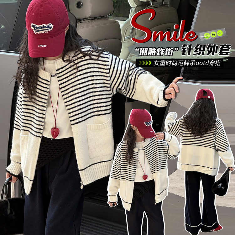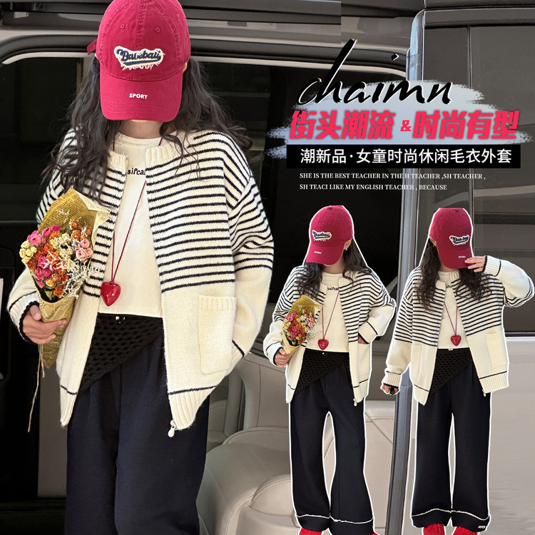成绩单&cjd2712开衫条纹毛衣 160cm 图片色