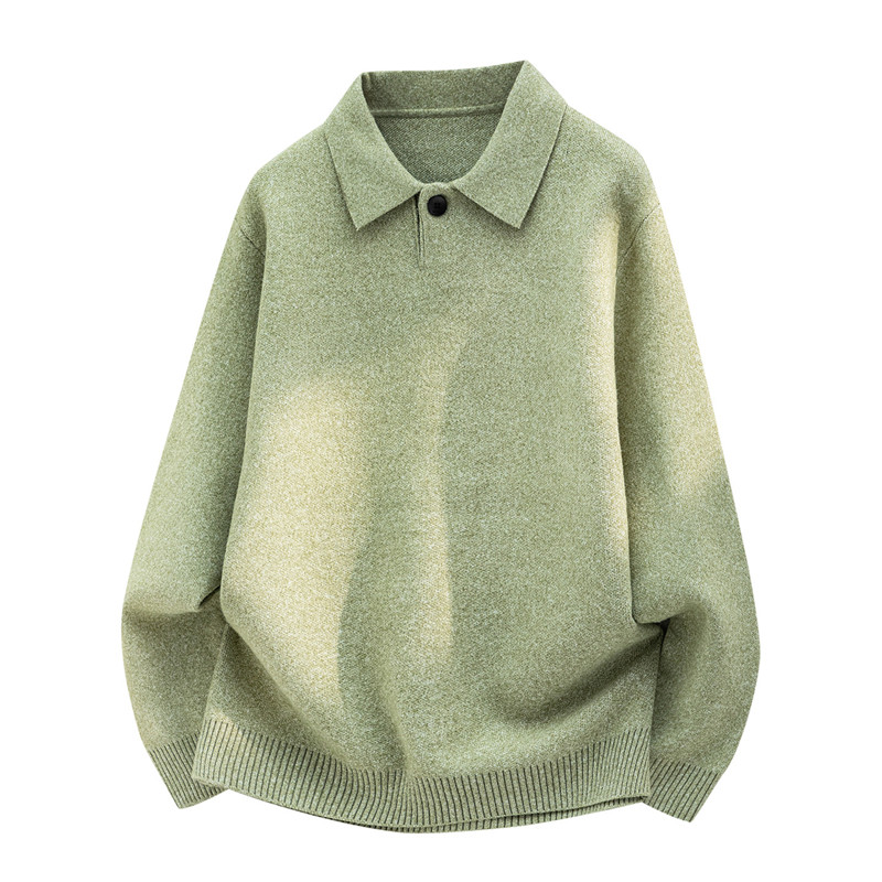 新款时尚秋冬男士翻领口系扣图标顺滑细腻闲上衣-93006 M 绿色