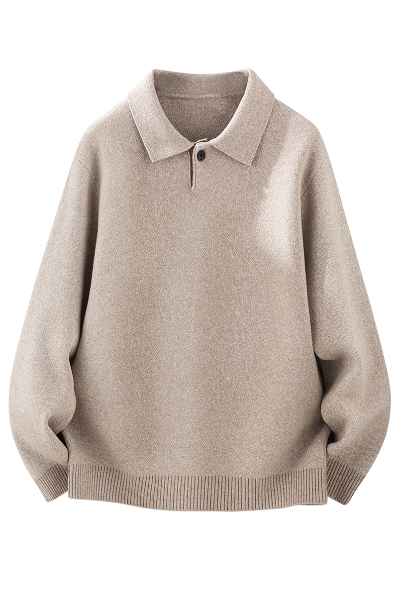 29007新款假两件男衬衫领针织衫 M 卡其色