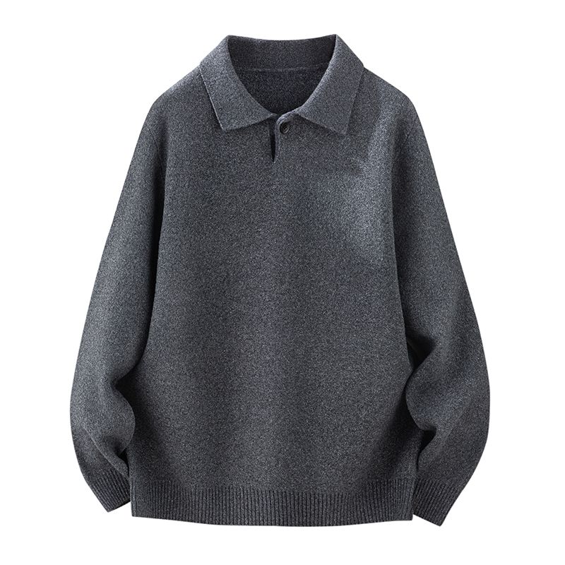 2506秋冬新款假两件毛衣男衬衫领针织打底衫加绒-模特图 M 灰色