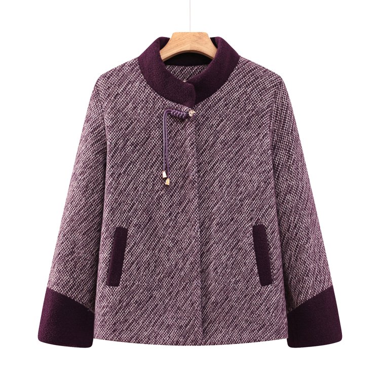 中老年女士红色毛呢大衣秋冬新款加厚保暖宽松显瘦外套大码女装 XL 紫色