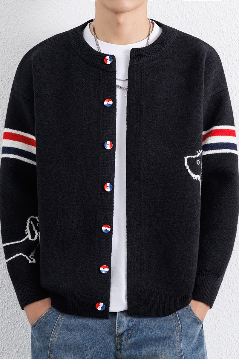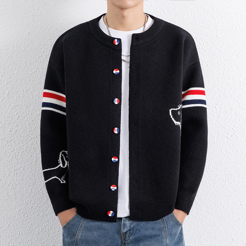 新款时尚秋冬男士翻领口系扣图标顺滑细腻闲上衣-93006 M 米白