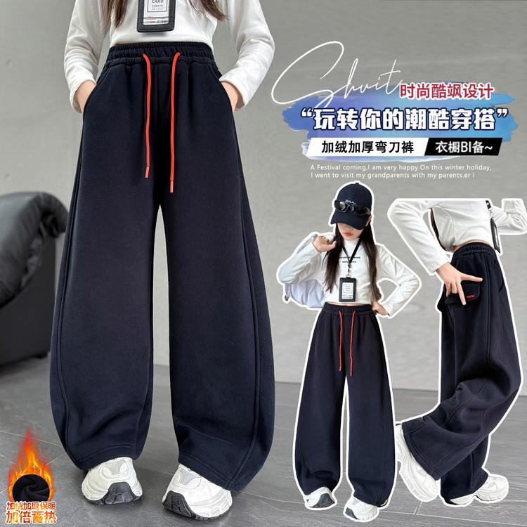 唯爱琪-2320款加绒雪尼尔女中大童阔腿裤气质优雅