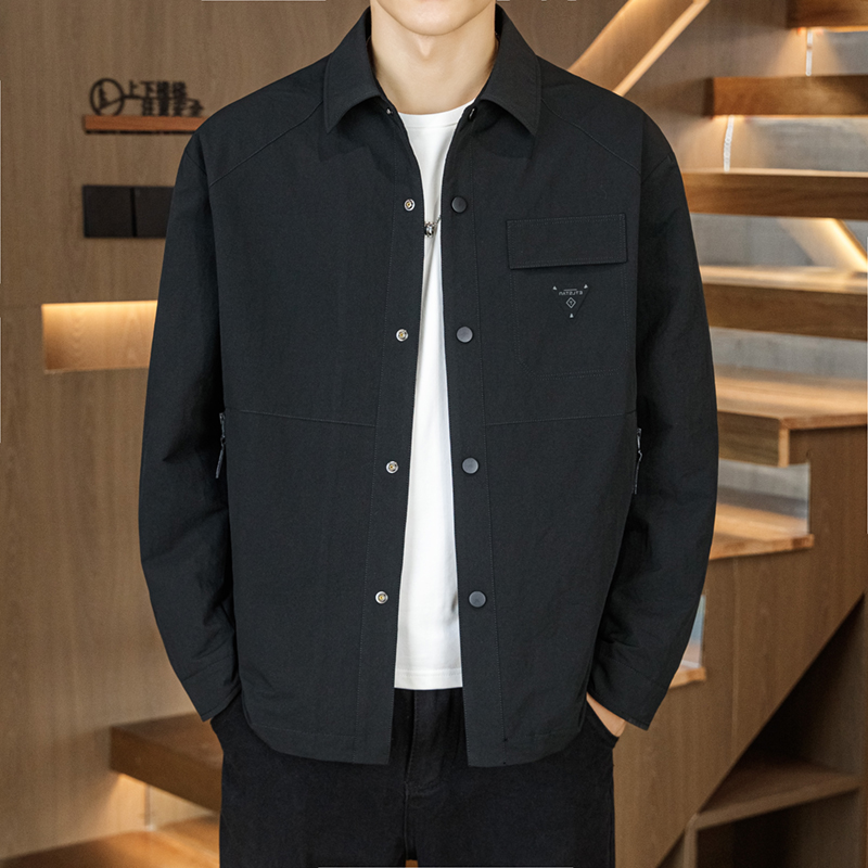 2025秋季新款翻领茄克衫纯色中青年休闲夹克男外套批110控价198 M/170 黑色