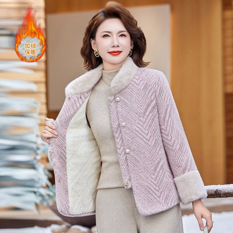 优雅中老年女士粉色加棉保暖外套冬季新款宽松大码设计舒适百搭袄子 XL 粉红色带领
