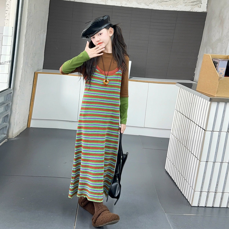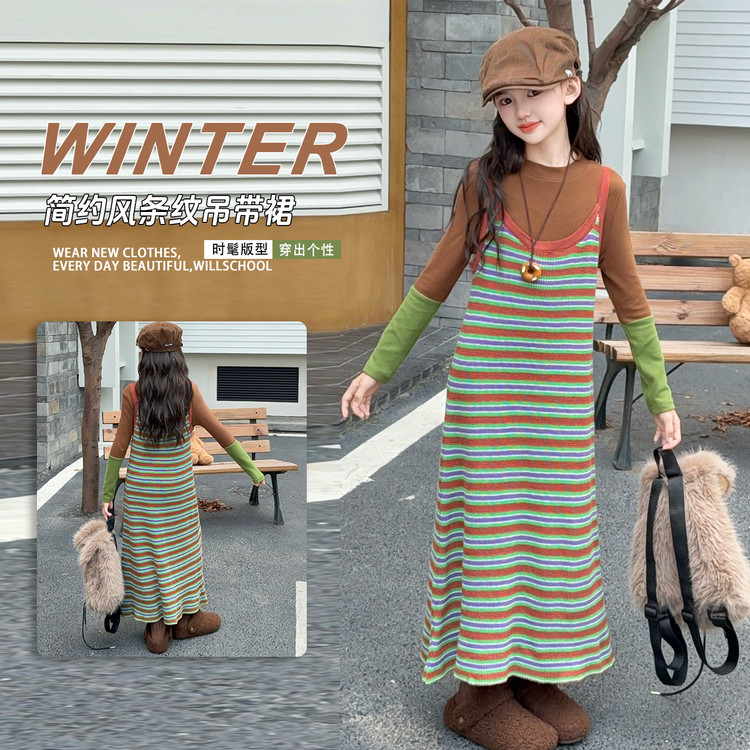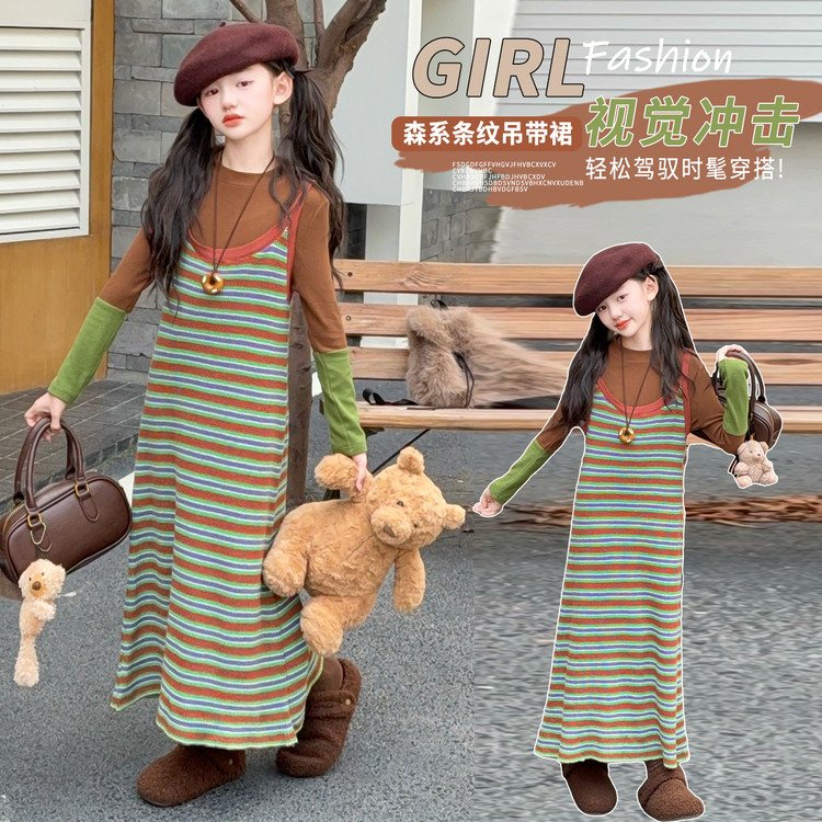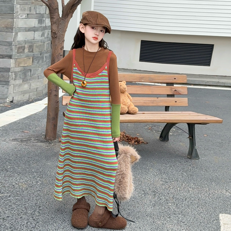 雅琪&25Q17绿色条纹连衣裙套装 120cm 打底衫