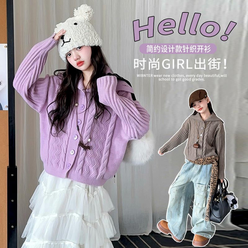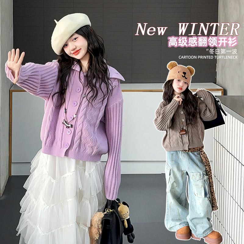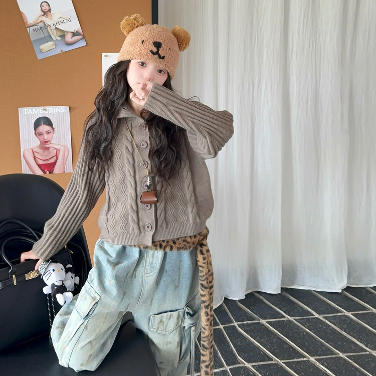 雅琪&25Q20翻领开衫毛衣 120cm 咖色