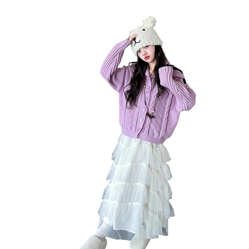 雅琪(原柒号童装)-破洞毛衣半身裙套装