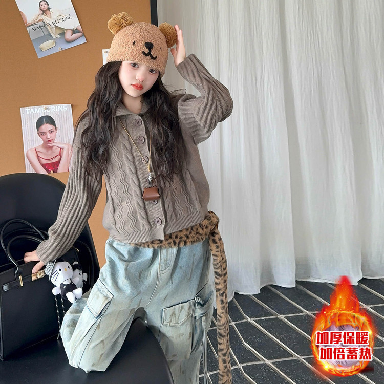雅琪&25Q19半拉链毛衣牛仔裤套装 120cm 灰色毛衣