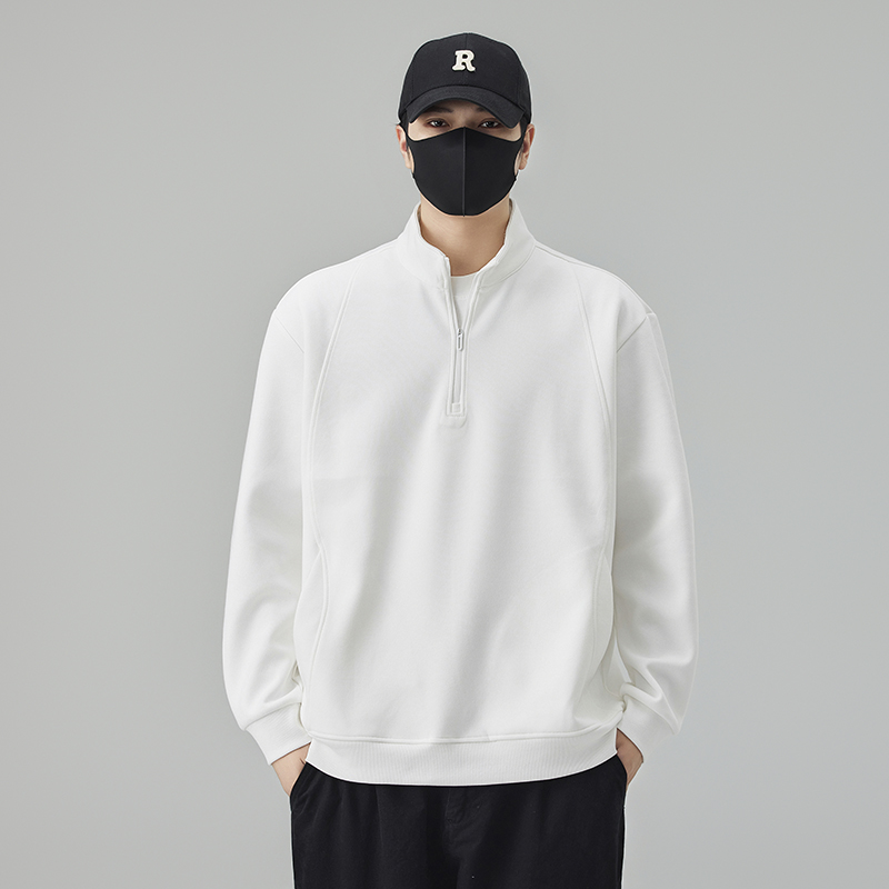 2025年秋款新款半拉链卫衣男款春季潮牌宽松套头立领男士打底衫 S 白色