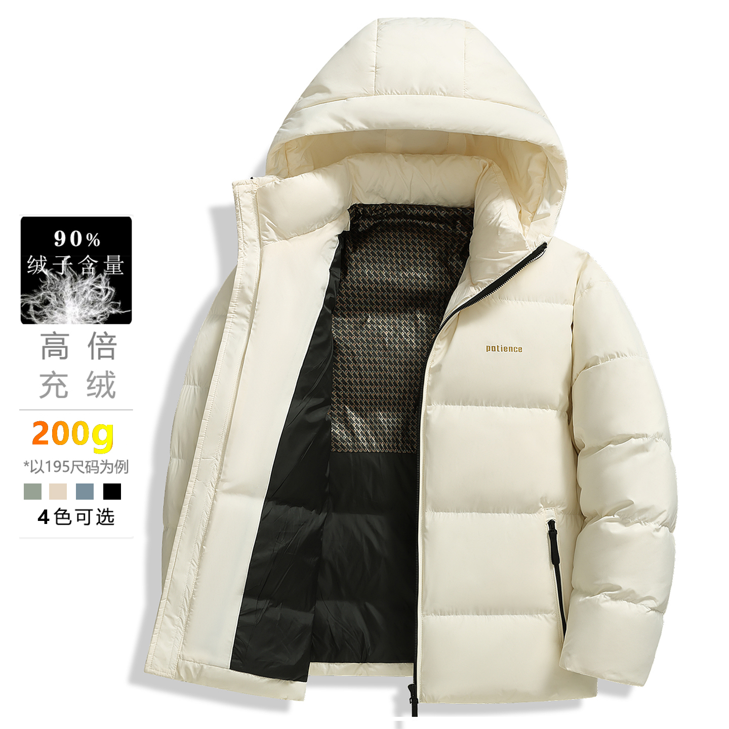 200g高充绒量90绒白鸭绒羽绒服2025冬季新款男装高品面包服 M 象牙白