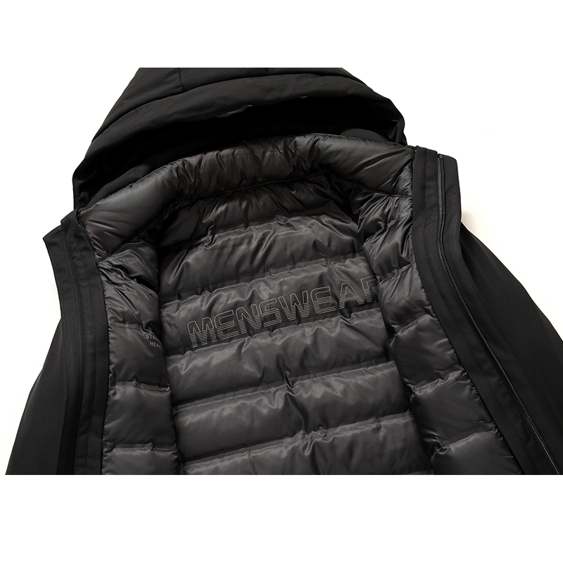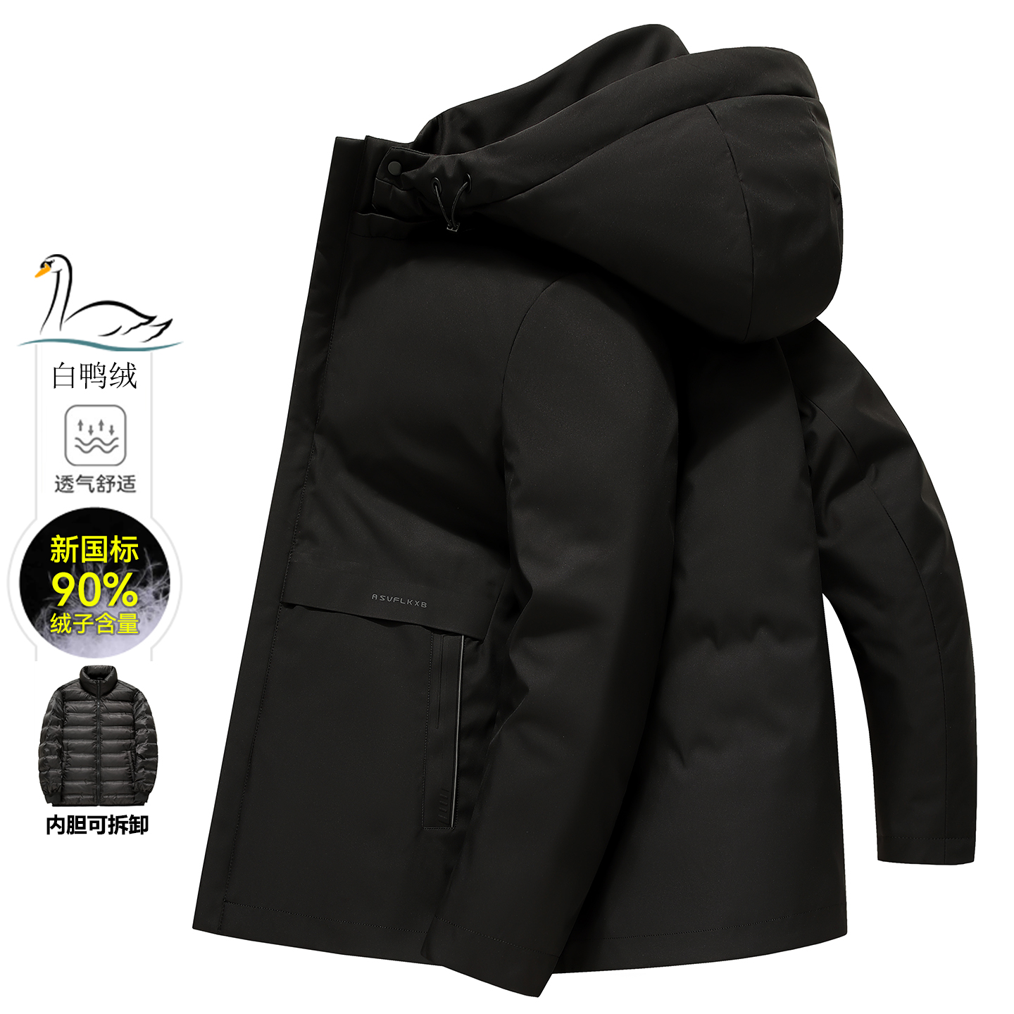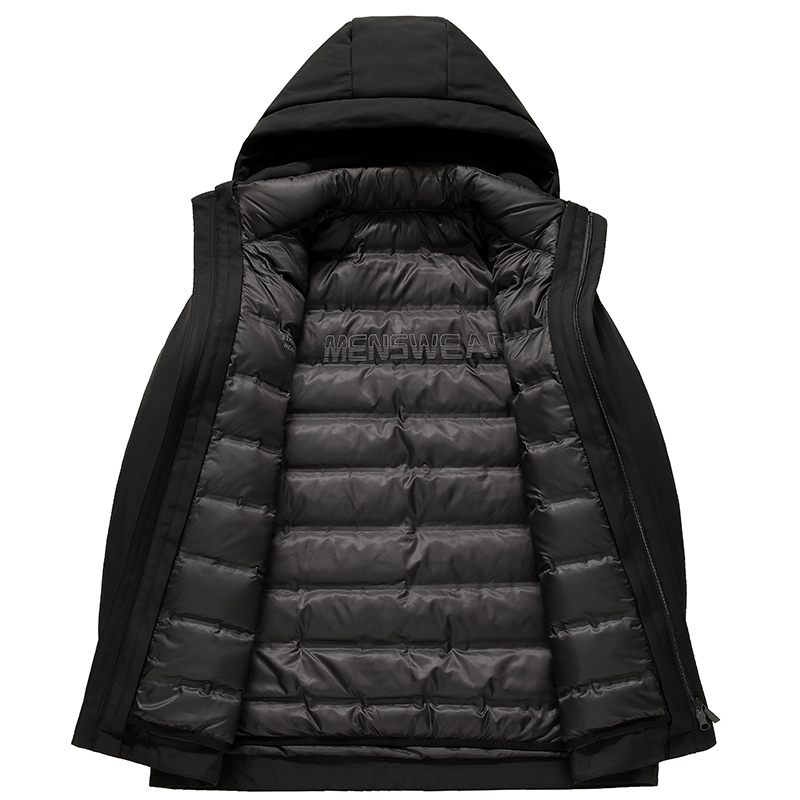 秋冬季新款男士翻领90绒鹅绒羽绒服商务加厚翻领夹克可脱卸内胆 M 黑色