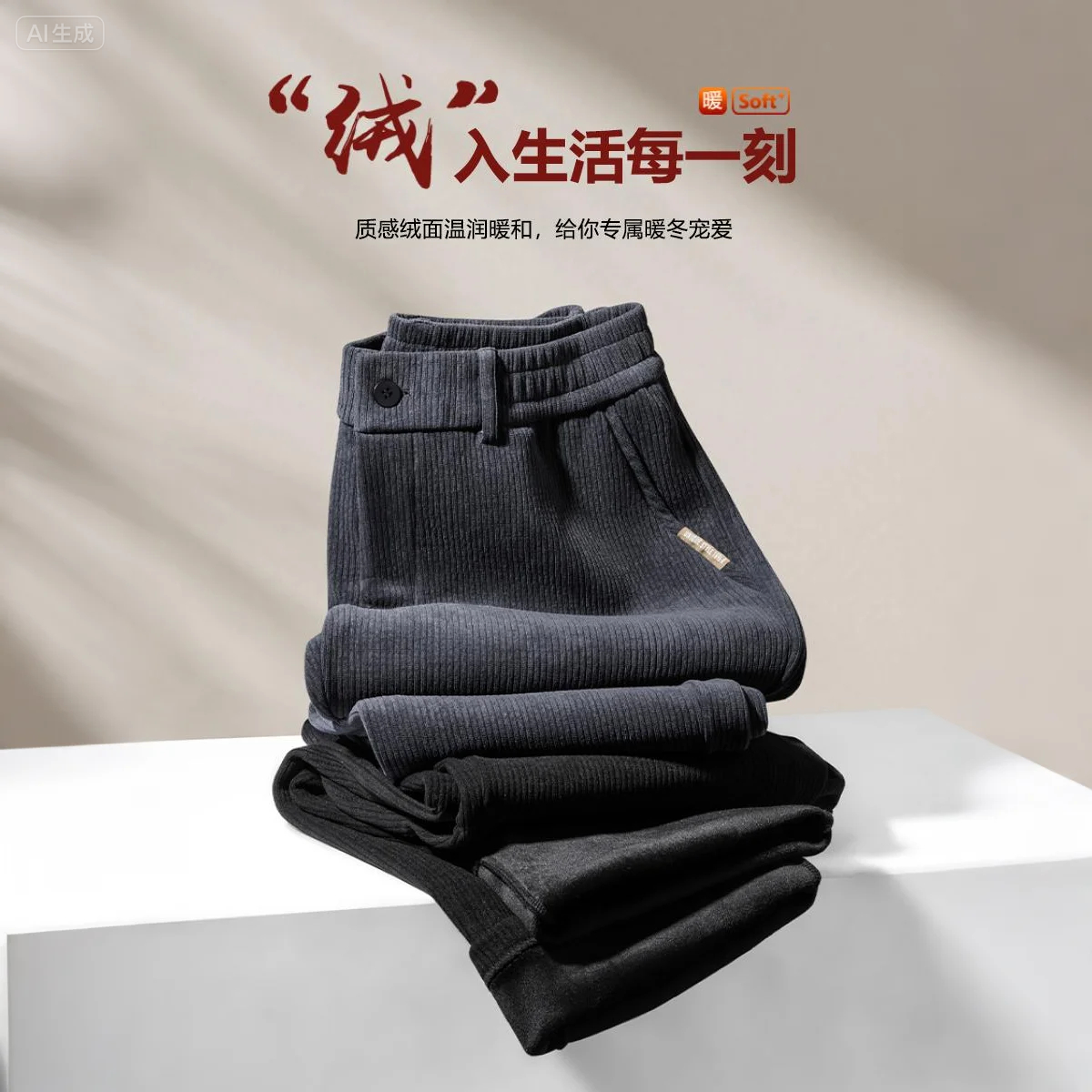 雪尼尔裤子男士秋冬季垂感加绒阔腿裤宽松直筒大码休闲长裤男 M 深灰色
