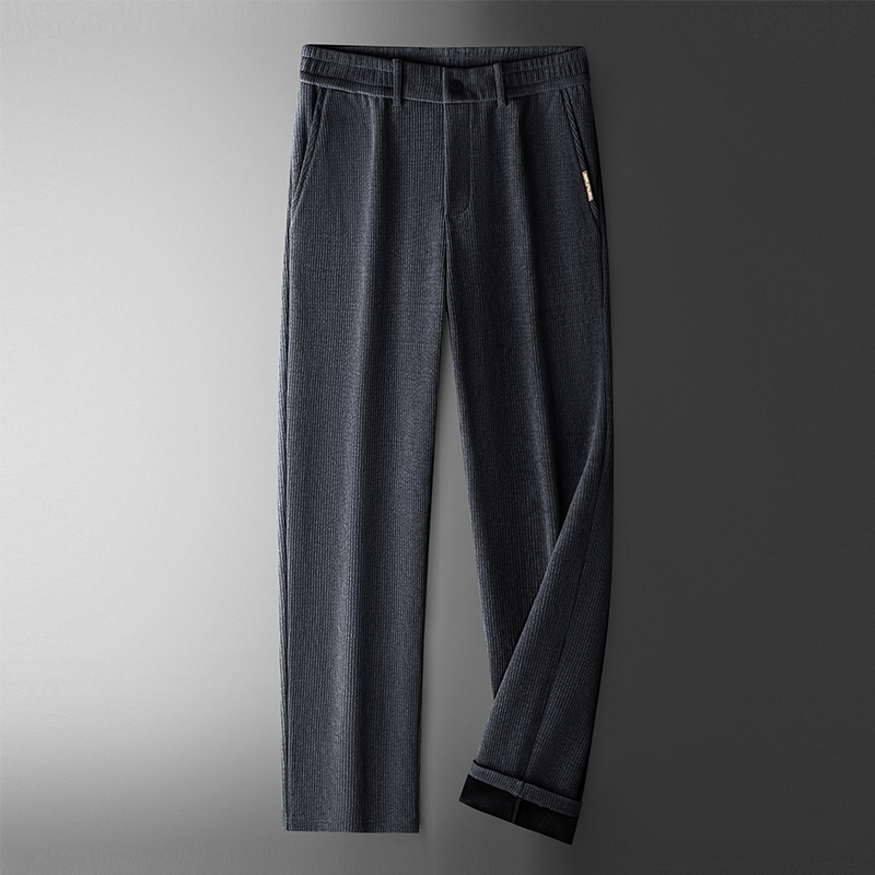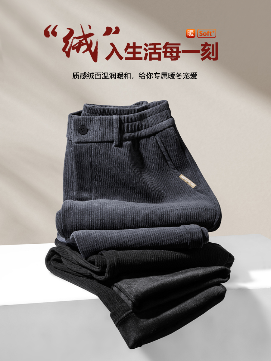 高端雪尼尔休闲裤男士冬季加绒加厚卫裤弹力宽松直筒中年爸爸裤子 M 深灰色