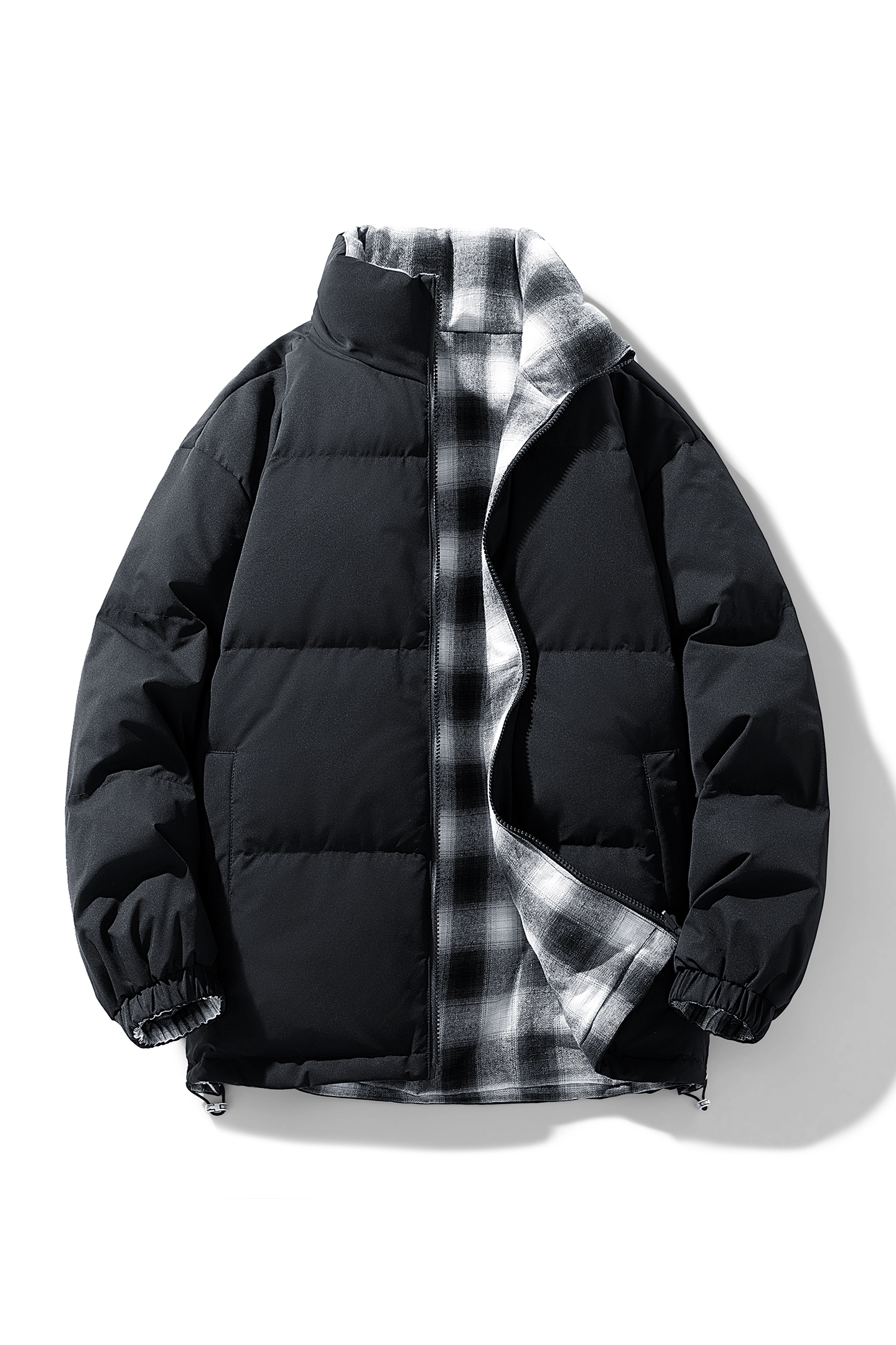 冬季千鸟格拼接面包羽绒服冬季潮流情侣款加厚保暖外套货号2312