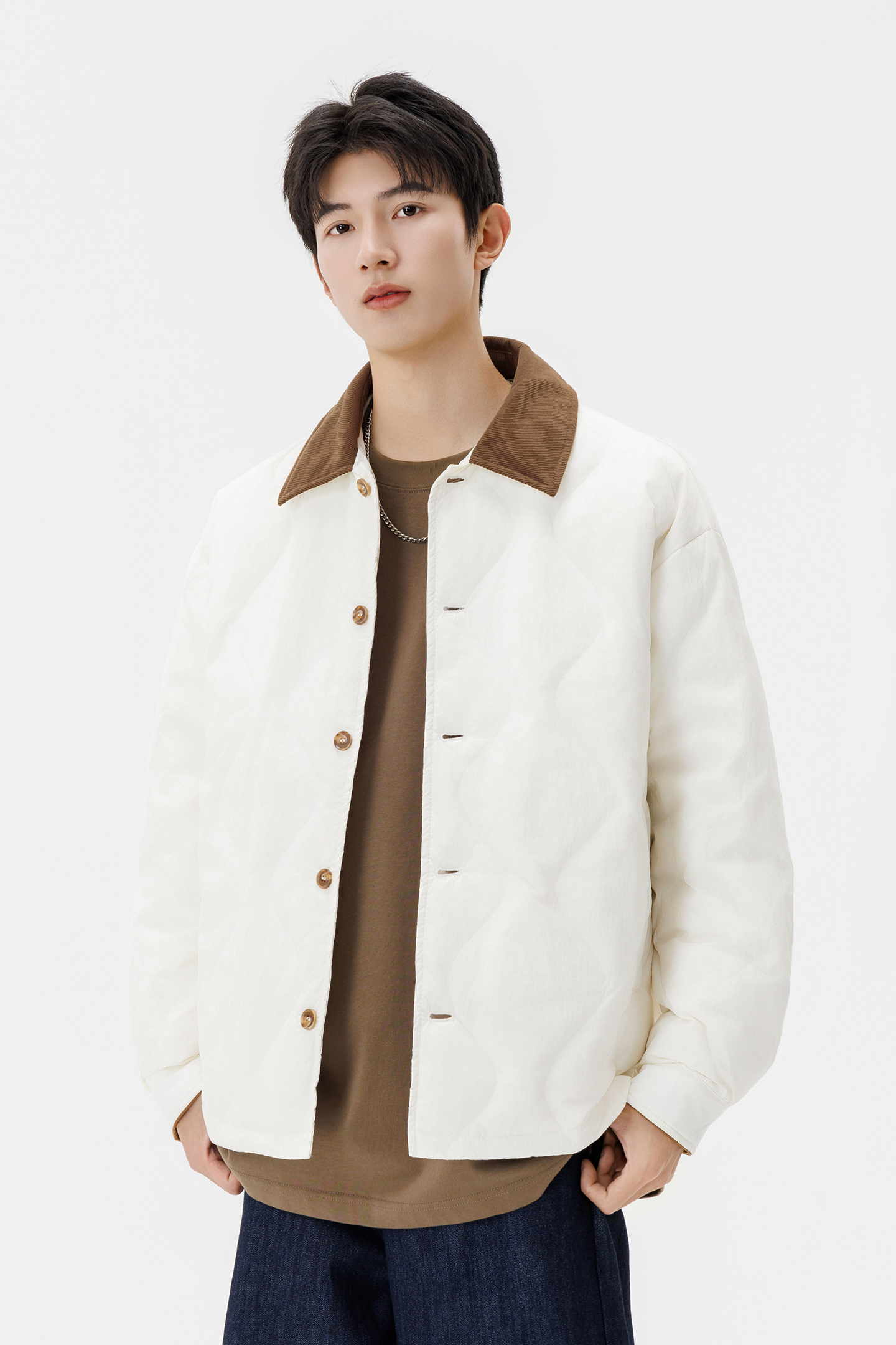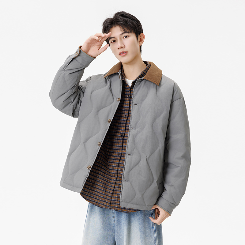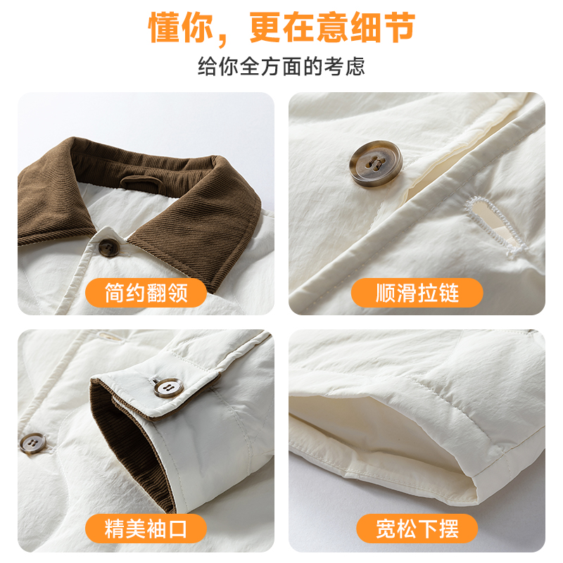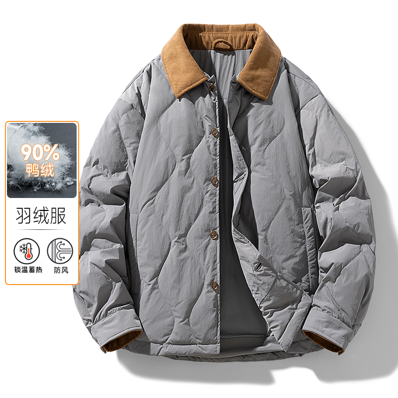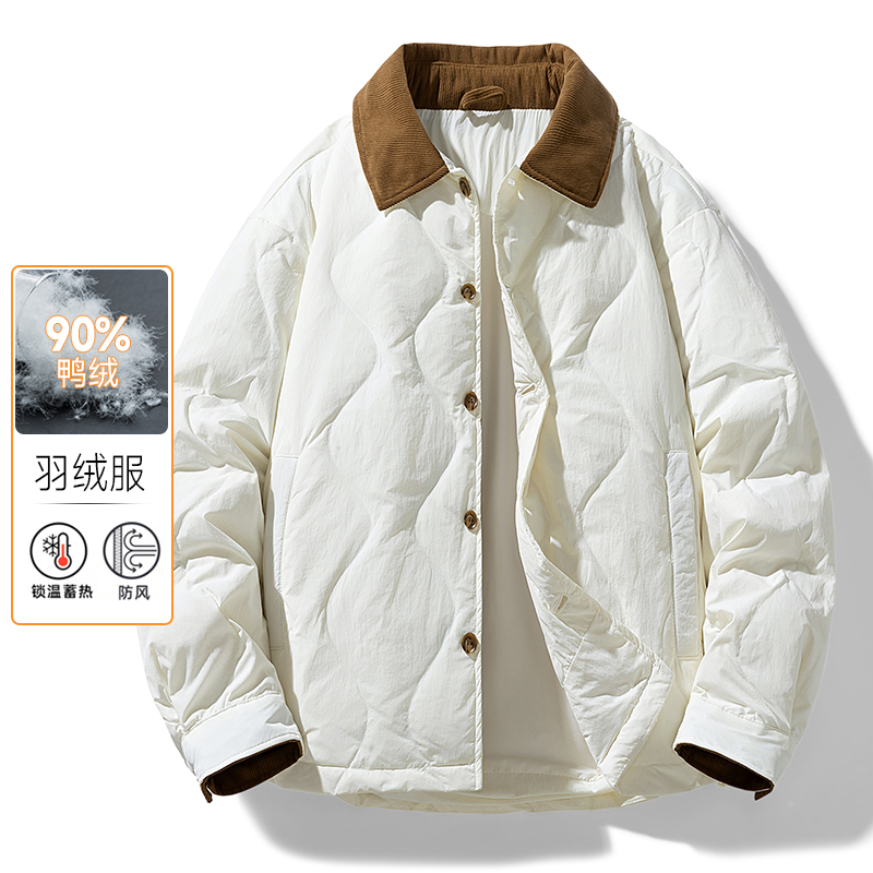 2025新款羽绒服薄款男士灯芯绒翻领保暖外套男女同款轻薄羽绒服 M 白色