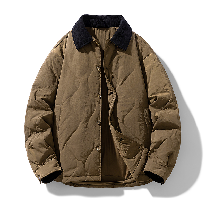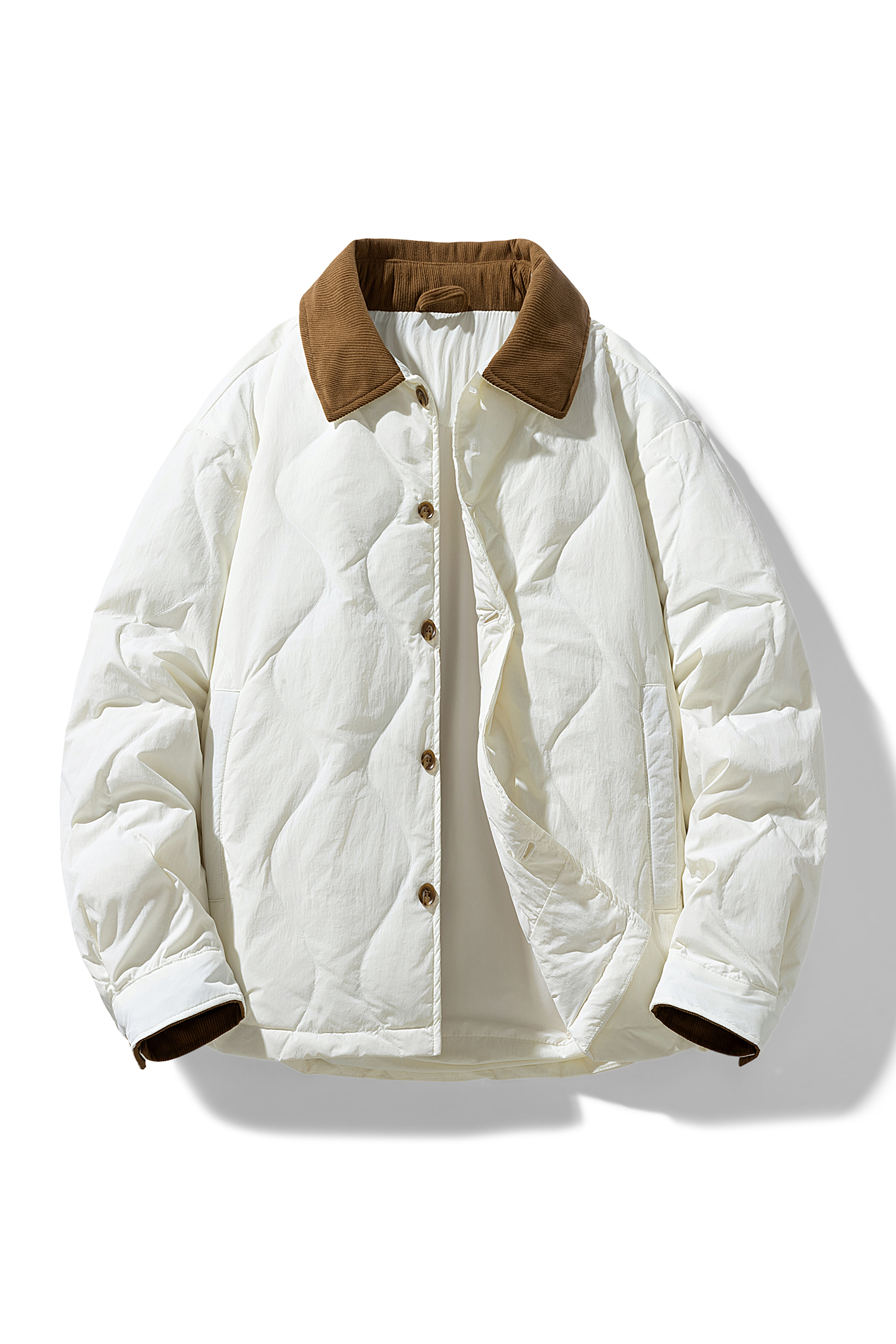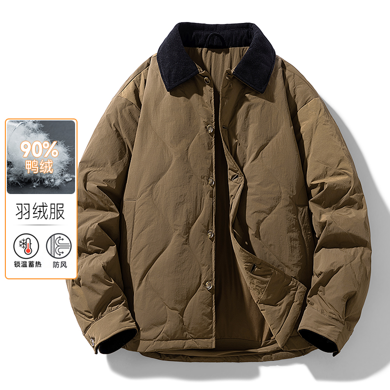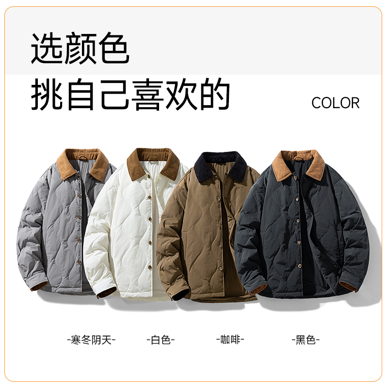 2025新款羽绒服薄款男士灯芯绒翻领保暖外套男女同款轻薄羽绒服 M 白色