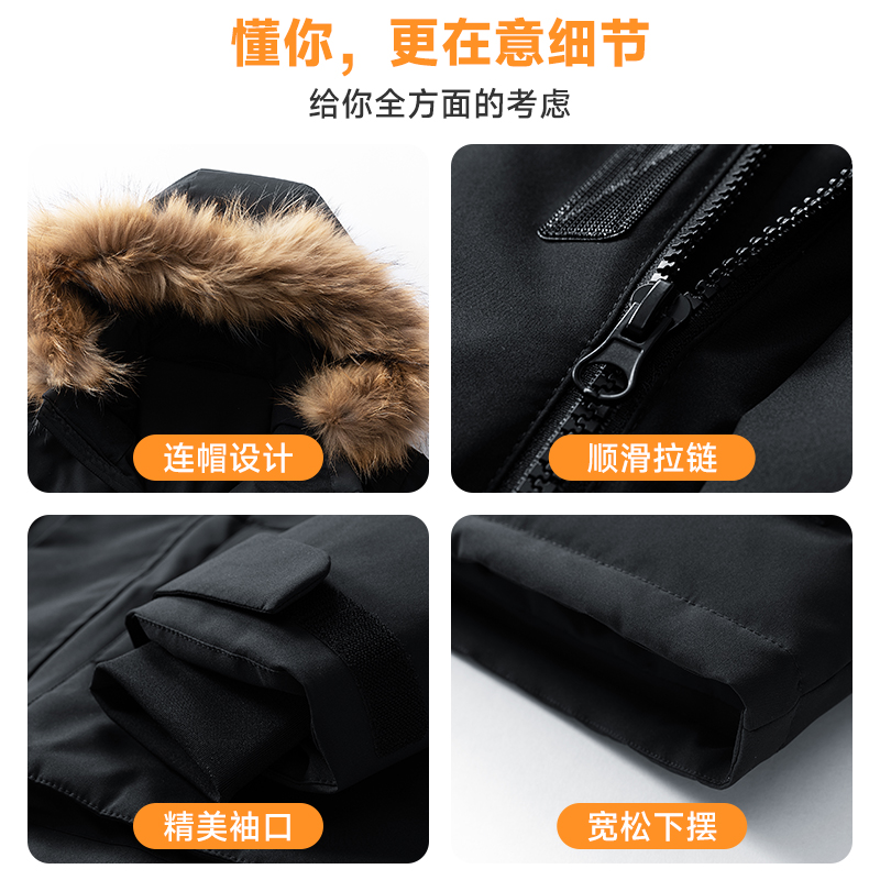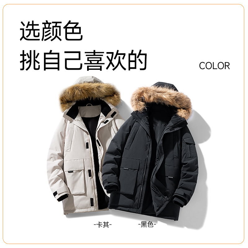 25新款羽绒服男士户外中长款连帽带真毛情侣款青少年加厚保暖外套 M(90-120斤) 黑色