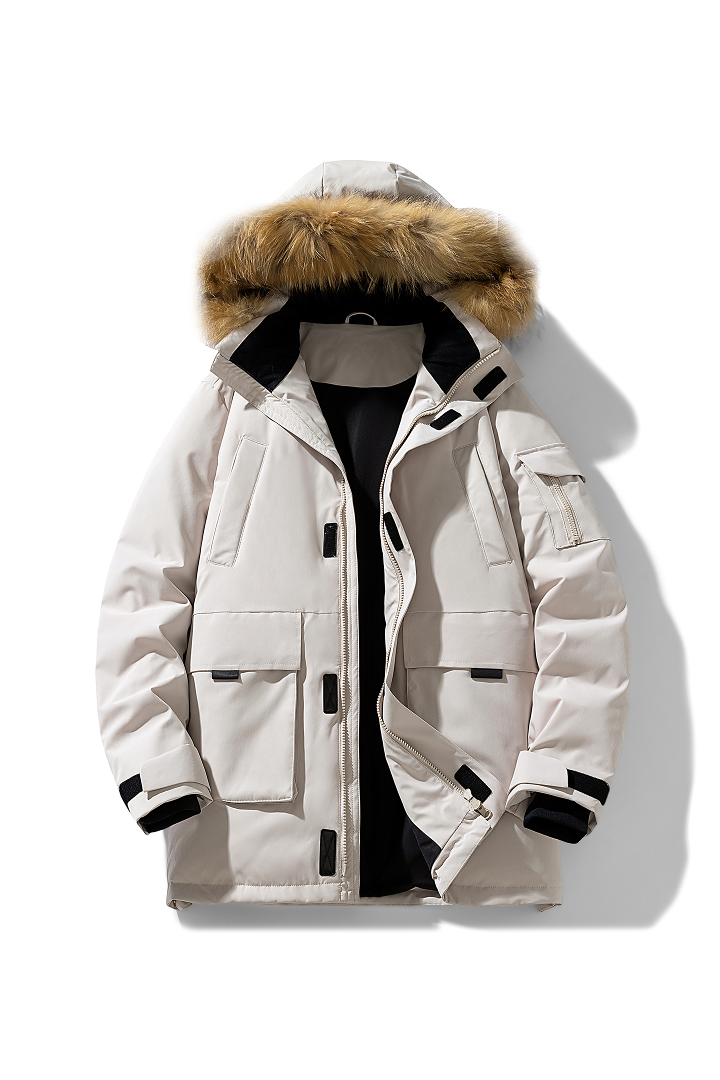 潮牌羽绒服男士机能风青少年港风宽松多口袋工装中长外套货号W-918