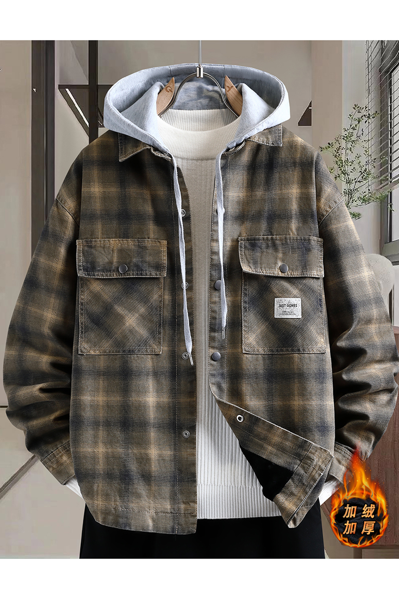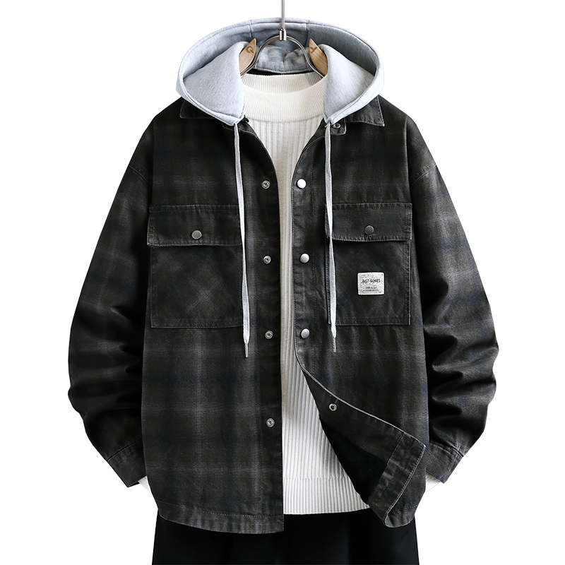 265秋季新款潮流时尚百搭连帽格子外套